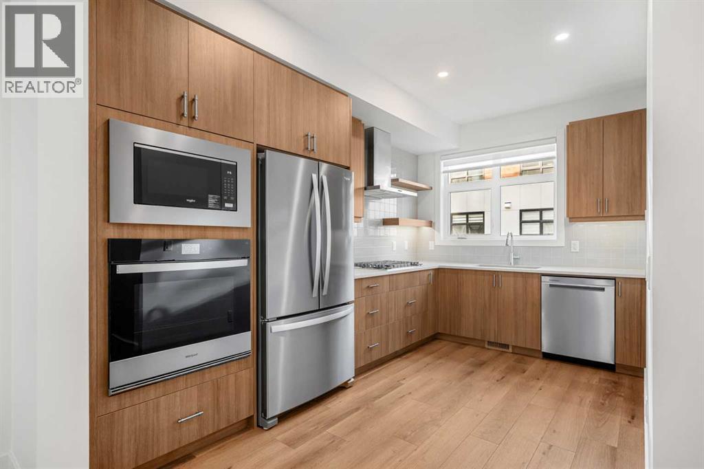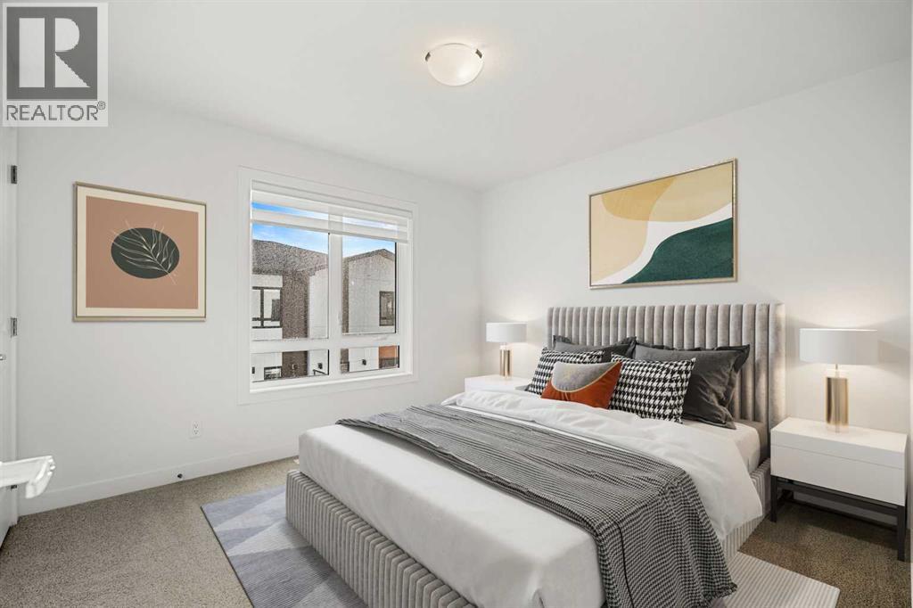 *Open House Saturday and Sunday from 2-4PM* Welcome to this exceptional Trico built townhome located in the West 83 community of West Springs, one of Calgary’s most desirable west-side neighborhoods. This thoughtfully designed residence offers over 1,300 square feet of living space across a well-planned, modern layout that blends comfort and style.Inside, you are welcomed by an open-concept main floor illuminated by abundant natural light, which seamlessly connects the living, dining, and kitchen areas. The kitchen features two-tone cabinetry paired with quartz countertops and a gas range stove, creating a refined and functional space for everyday living. A 16-foot wide deck extends the living area outdoors, providing an inviting setting for morning coffee or relaxing in the evening.The upper floor holds two generous bedrooms, each with its OWN ENSUITE BATHROOM, ensuring privacy and comfort for residents and guests alike. The primary bedroom includes a three-piece ensuite and DUAL WALK IN CLOSETS, providing ample storage and convenience. Contemporary finishes throughout the home enhance the overall sense of refinement.Additional features include upgraded LED lighting, zebra blinds for versatile light control, and rough-in for A/C to support year-round comfort. The intelligent floor plan maximizes space while maintaining a flow that suits both everyday living and entertaining.Situated close to parks, pathways, shopping, dining, and excellent schools, this property offers both a peaceful residential setting and quick access to downtown Calgary. Major routes are within easy reach, making commuting and weekend escapes equally convenient.This home includes an Alberta New Home Warranty and represents a rare opportunity to live in a vibrant community with access to some of Calgary’s best amenities. Don't miss your chance to view this property - head to the Showhome today! (31545470)