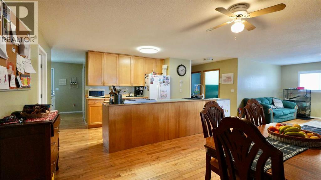 Take a look at this family-friendly 3-bedroom, 2-bathroom acreage that has just hit the market! Situated on 9.60 acres, including approximately 7 acres of cultivated land and five row of Saskatoon trees, this property is located just outside the farming community of Deadwood, AB. Offering over 1,500 sq. ft of developed living space on the main level, this well-maintained home clearly reflects pride of ownership. You are welcomed by a generous entryway and an open, functional floor plan, highlighted by a mix of hardwood and laminate flooring. The main level provides ample space for everyday living and entertaining, while the unfinished lower level offers excellent potential to expand your living area with a family room, additional bedrooms or recreation space. A cold storage room adds convenient space for garden produce and extra storage. The kitchen features a central island and pantry, providing plenty of room for meal prep and storage. Step outside to the nicely sized deck, perfect for summer barbecues and outdoor relaxation in you own sanctuary. Recent updates include new asphalt shingles and connection to the municipal water co-op program. Location is key – this home offers peaceful country living while remaining close to the heart of the Deadwood community and just a short distance to Manning. (31551053)