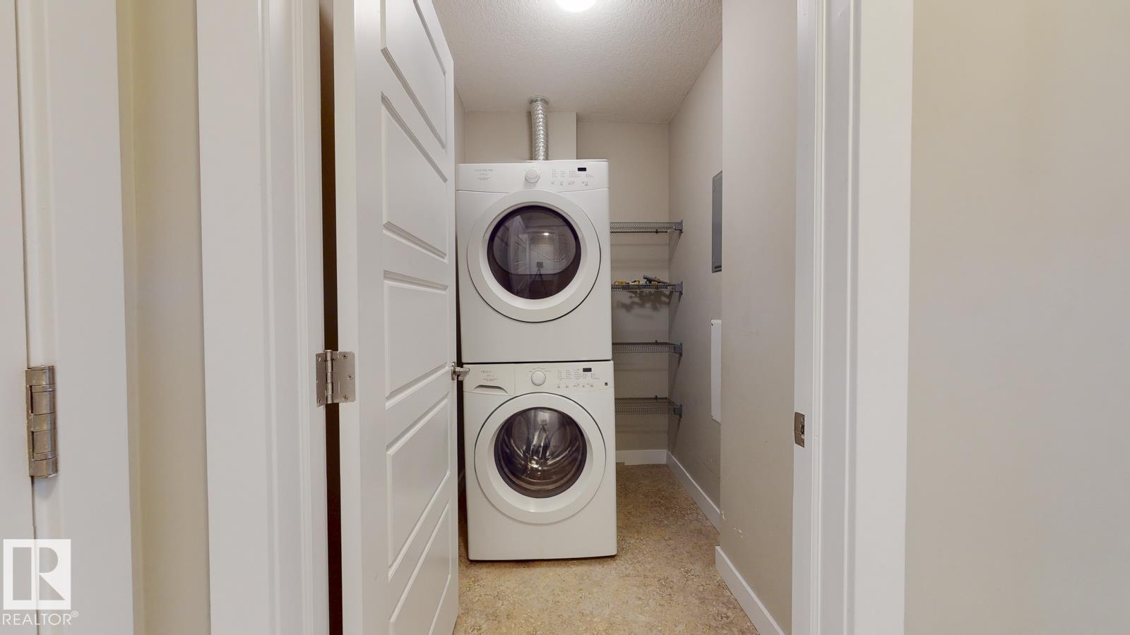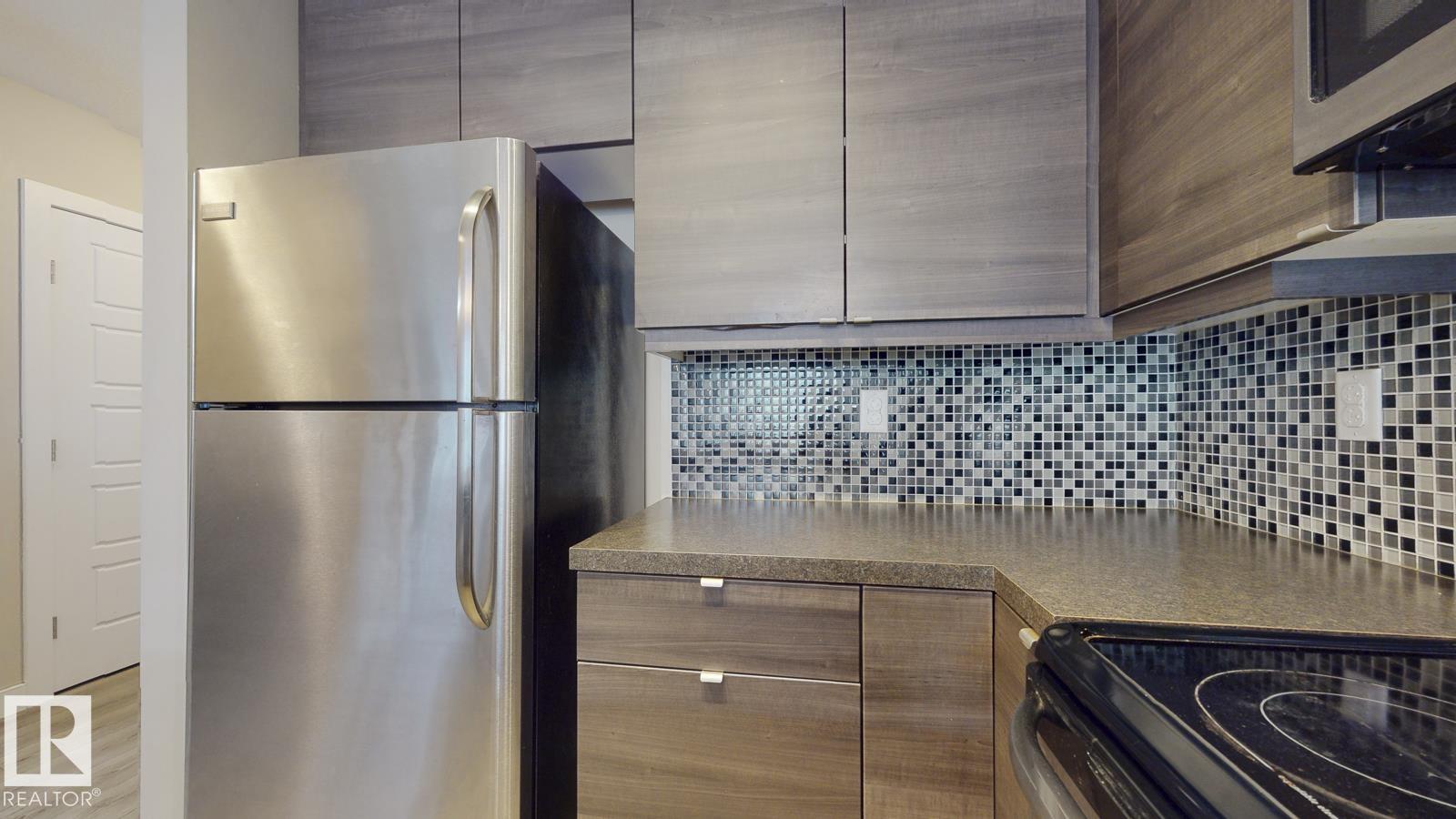 This building is located in the ION of AMBLESIDE. The condo features a spacious layout including an open concept kitchen with tile backsplash and stainless steel appliances. The large living and dining room features laminate flooring and an entrance to a patio area. There is a spacious bedroom with WALK-IN closet, a full bathroom, in-suite laundry and a computer station. Enjoy the convenience of a TITLE energized parking stall. This complex features many amenities including BBQ area, entertainment room, fitness room and a guest suite. This building in close to all amenities including shopping, public transportation, restaurants, schools, Currents of Windermere and easy access to the Anthony Henday. (33741543)