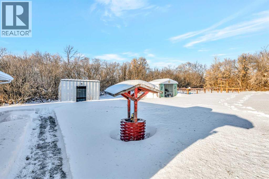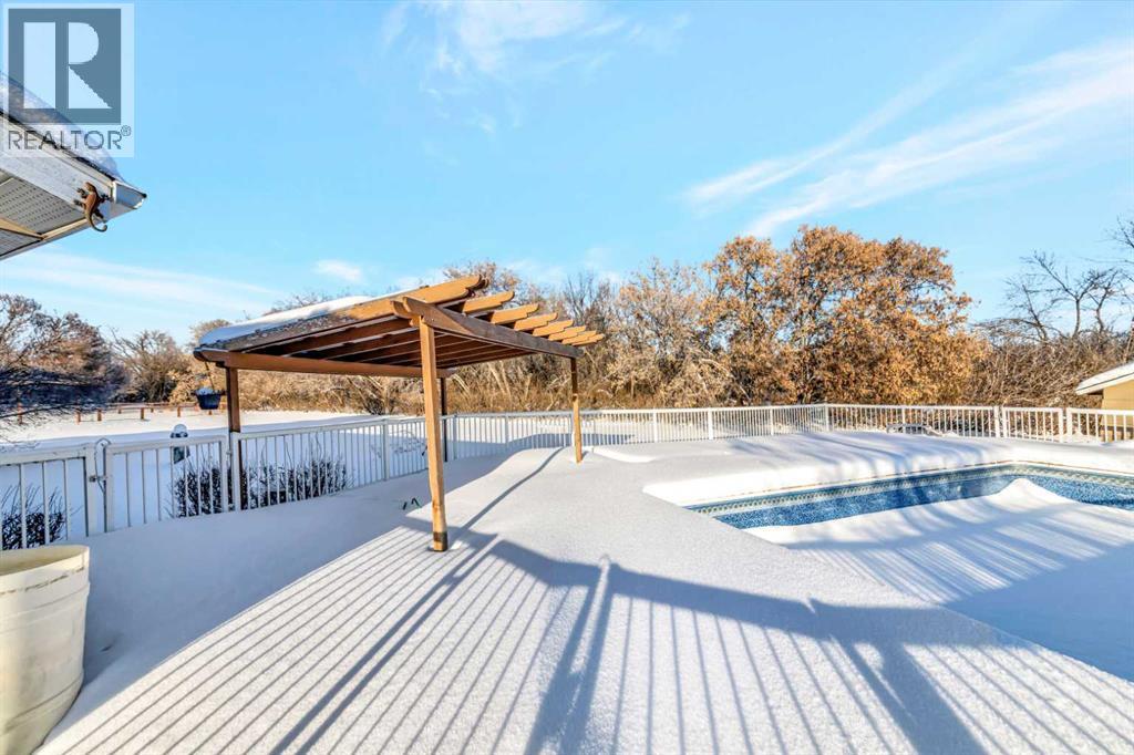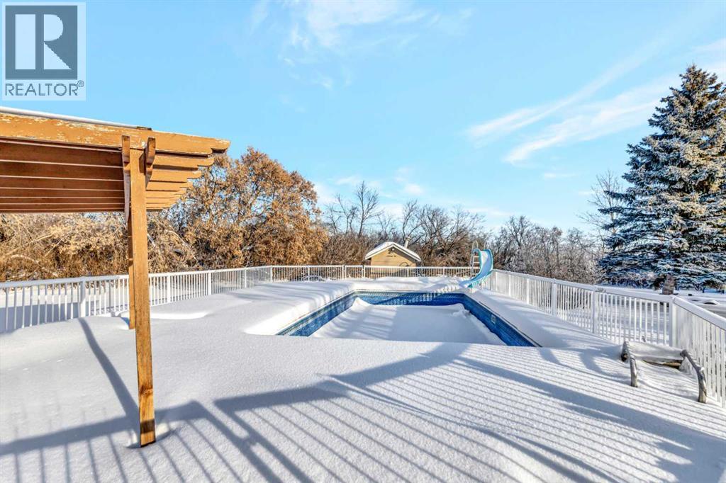 This acreage is a rare gem being only 15 minutes South of Lloydminster and the school bus for the lloydminster school division picks up the kids at the front door! This 1,600 square foot bungalow is situated on 3.12 acres with lots of space for a hobby farm. Upon entering the home, you’ll feel the space with a large entrance and ample storage. The floor plan is functional with a big living room with wood burning fireplace and flows into the eat-in kitchen with an island, pantry space and lots of cabinet and countertop space. Off the dining room, through the garden door, you’ll find an inground swimming pool (with new concrete, liner, pump and sand filter in 2022) featuring a waterslide, hot tub and pergola! Vacation can be everyday just out the back door! The pool measures 16’ wide x 32 long x 4’ deep in shallow end and 8’6” in the deep end. Back in the house you’ll find 3 good sized bedrooms on the main floor with the primary featuring double closets and a 3 piece ensuite. The main floor also features with hook ups for an additional 2 piece bathroom. The basement is complete with 2 more big bedrooms, a den, 4 piece bathroom, and a family room with a wet bar. The basement has a steel I beam in the ceiling, so no teleposts! The yard has a 29x25 detached heated garage with double garage doors, a 75x25 fenced in garden area, a large park with multiple swings and play sets, and a barn area that is fully fenced and ready for the mini cows! The septic tank has a pump out in the back field and was dug out and re-done in 2023. This home is listed under a recent appraisal value and is ready for a quick possession! (31551265)