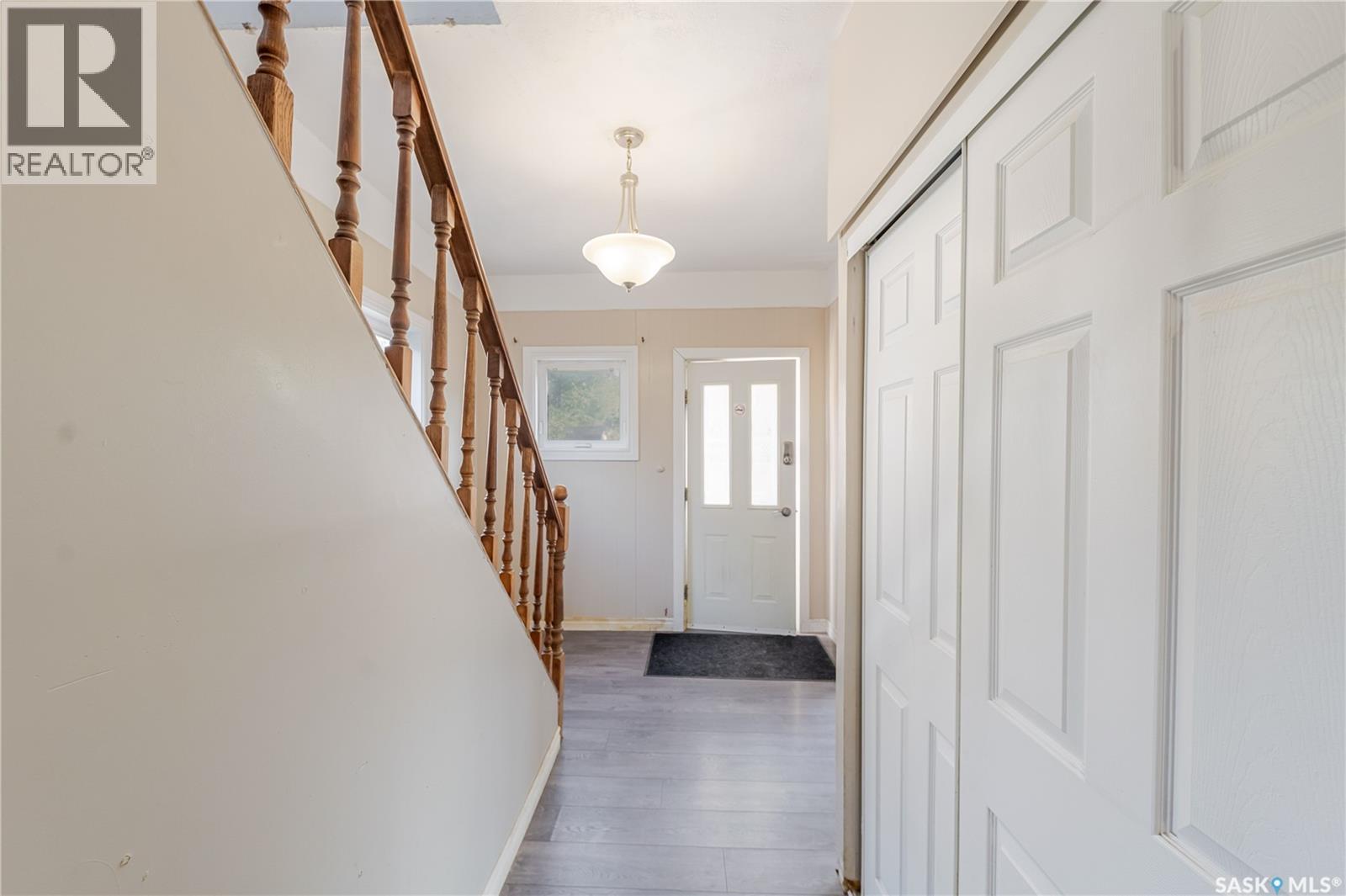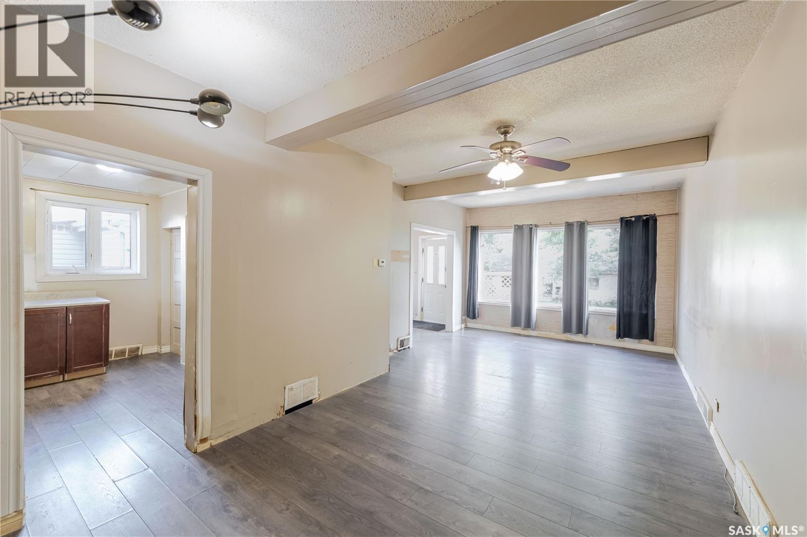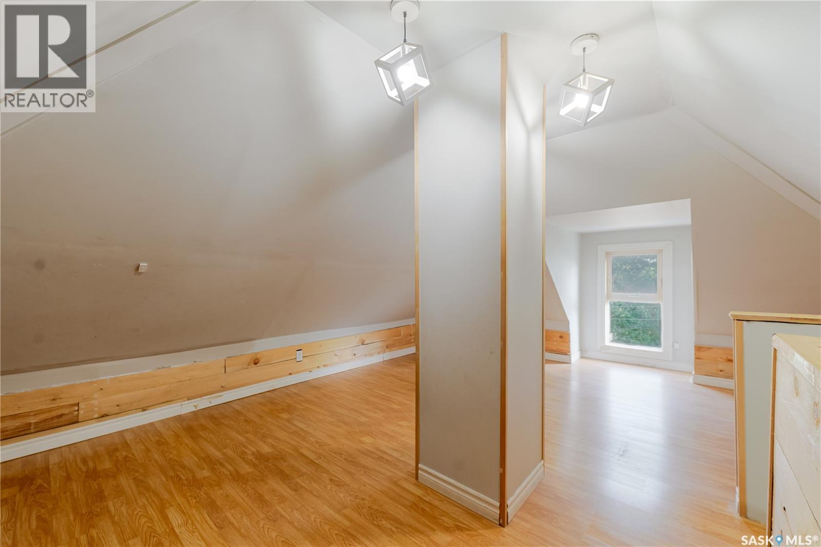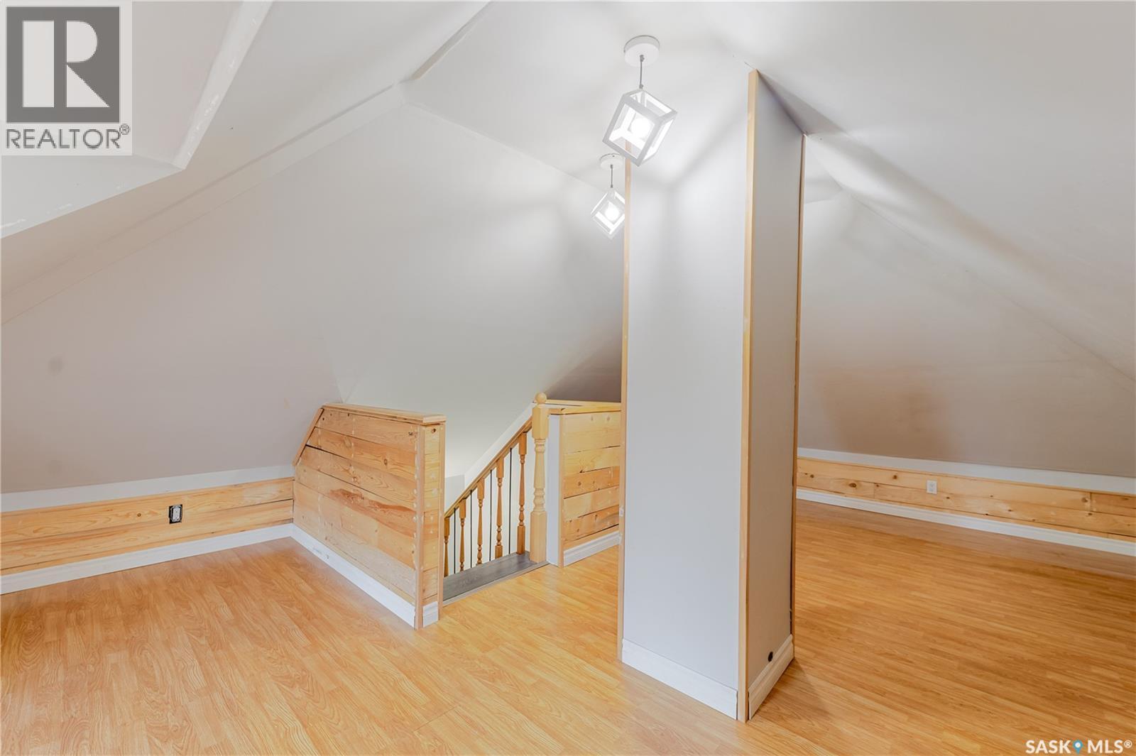 Welcome to this inviting two and a half storey home that blends character, comfort, and affordability. A welcoming front deck with a unique second tier perfect for relaxing, entertaining, or even creating a potted garden sets the tone. Inside, the spacious foyer includes a built-in closet and 9-foot ceilings, creating an open and airy first impression. The open concept living and dining rooms feature laminate flooring and plenty of room for family gatherings or hosting friends. The updated kitchen boasts maple cabinetry, ample counter space, a built-in dishwasher, fridge, stove, and a coffee bar area. From here, a mudroom leads to the patio and fully fenced yard. Upstairs, you will find three generously sized bedrooms and a refreshed four-piece bathroom with extra storage. The top floor loft offers incredible versatility with enough space for a kids’ play area, a home office, or a cozy reading nook while enjoying beautiful views. The basement, though unfinished, provides laundry facilities and abundant storage. Recent updates include shingles, some PVC style windows, kitchen and bath upgrades, a high efficiency furnace, water heater, and central air for those warm Saskatchewan summers. Outside, there is a deck and patio area with some mature trees, all inside a fully fenced yard. While the backyard needs some care, this home is still a great choice for first time buyers, growing families, or investors looking for space and potential at an affordable price. (29298297)