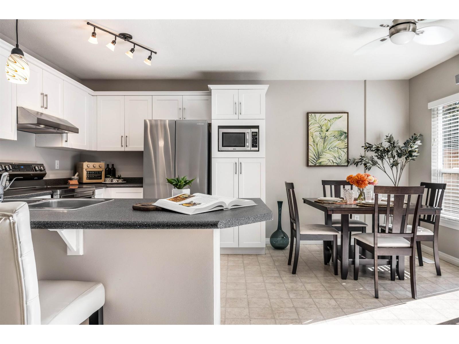 Charming 3 bed, 2 bath townhome in a quiet, family-friendly neighbourhood close to schools, recreation, shopping & transit. Bright open-concept main floor with spacious kitchen featuring newer SS appliances (2022), modern countertops & soft-close cabinets, flowing into the living area with cozy gas f/p. Upstairs boasts a large primary bedroom with ensuite access to a 5pc bath w/dual vanity, plus 2 more bedrooms & laundry. Recent updates: HWT & roof (2022), W/D (2021), dbl garage w/new door. Move-in ready & perfect for families! * PREC - Personal Real Estate Corporation (32352577)