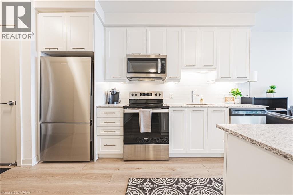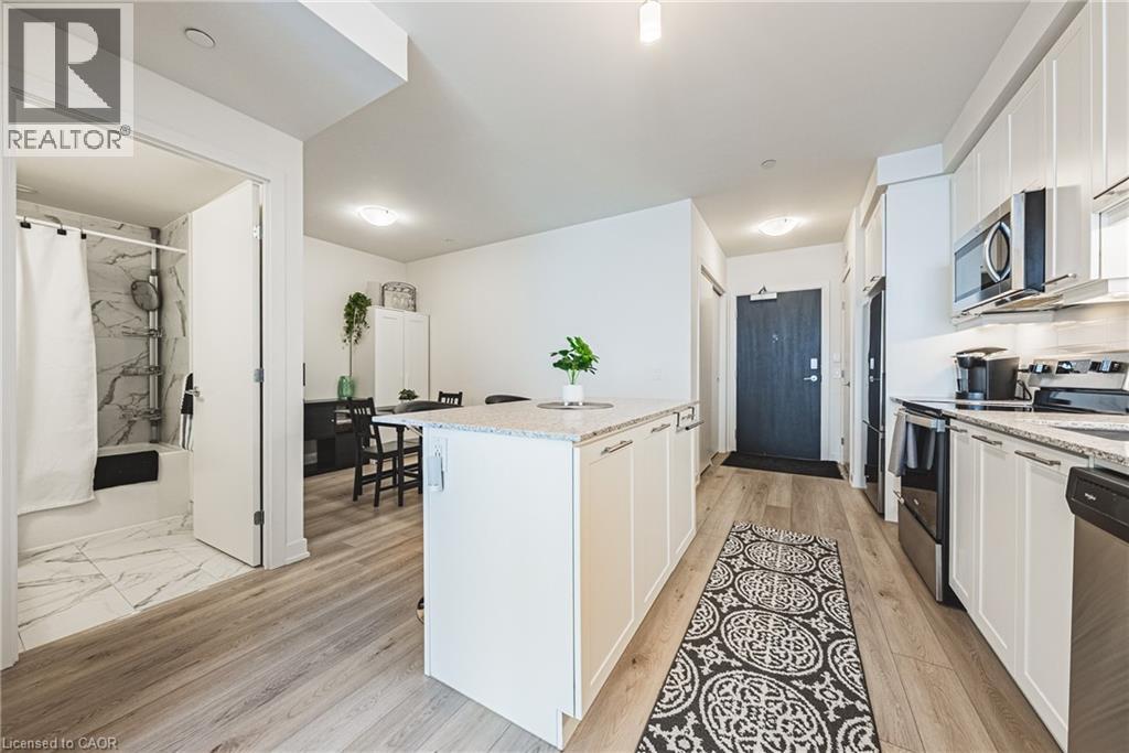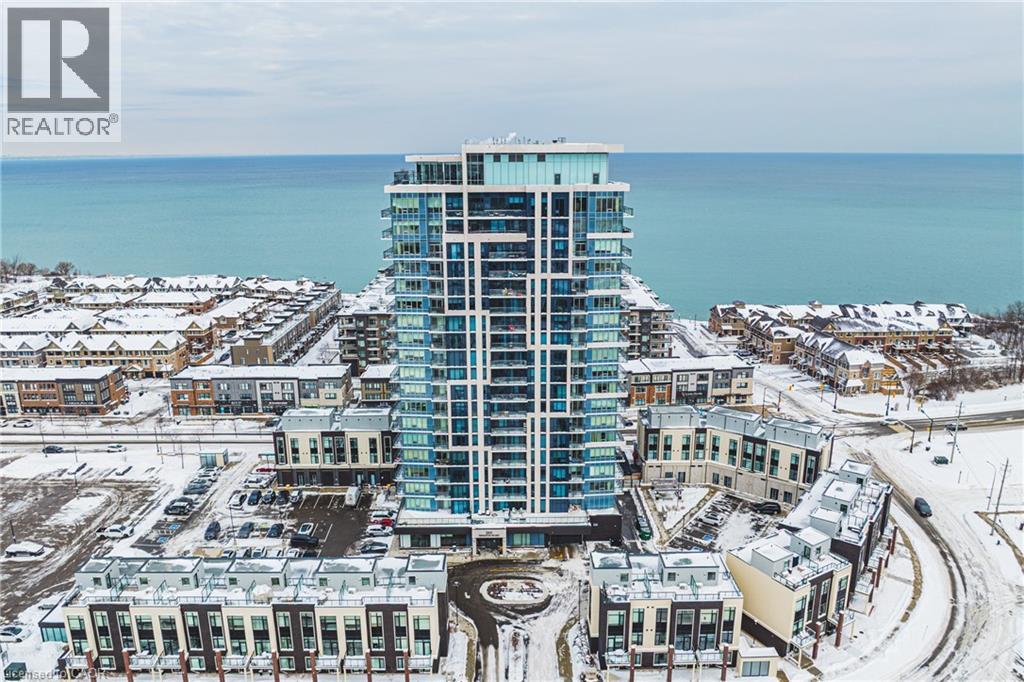 Enjoy breathtaking views of Lake Ontario and the Niagara Escarpment from this bright, modern condo in a highly desirable waterfront community. Just steps from the beach, local shops, cafes, dining, and scenic lakefront trails. Huge upgrade with two parking spots logistically positioned side by side and steps from the elevator. Approximately 12 k in upgrades. This thoughtfully designed unit features sleek laminate flooring throughout with massive island, stainless steel appliances, and an open-concept layout. The spacious den offers versatility—ideal for dinette and entertaining, guest room, office or nursery. Floor-to-ceiling windows flood the space with natural light, creating a warm and inviting atmosphere. Resort-style building amenities include a fully equipped gym, yoga/spin studio, self-serve pet spa, rooftop terrace with BBQs and indoor/outdoor dining, a sky lounge with fireplace, stylish party room, indoor bicycle storage, 24-hour concierge, and security cameras for peace of mind. Located just 30 seconds from the QEW for easy commuting. Includes one parking spot and one locker. Costco, Metro, LCBO, coffee shops, and restaurants are just across the street. Ideal for first-time buyers, professionals, or investors looking for lifestyle and location in one unbeatable package. (70071022)