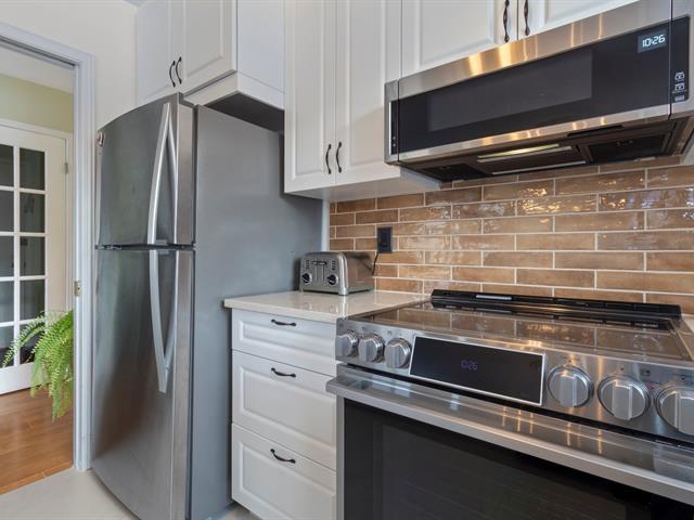 Superbe condo lumineux et impeccablement entretenu, situé dans un secteur paisible et verdoyant de Rivière-des-Prairies. Il offre une aire de vie ouverte conviviale regroupant salon, salle à manger et une magnifique cuisine entièrement rénovée avec îlot central et nombreux rangements. Rare sur le marché, la propriété propose trois chambres de bonnes dimensions et une salle de bain avec grande baignoire. Deux balcons, un garage avec rangement fermé et un syndicat de copropriété bien géré complètent l'ensemble. Emplacement stratégique près des parcs, écoles, commerces, transports en commun, gare, autoroute 25, piste cyclable et piscine publique (46803731)