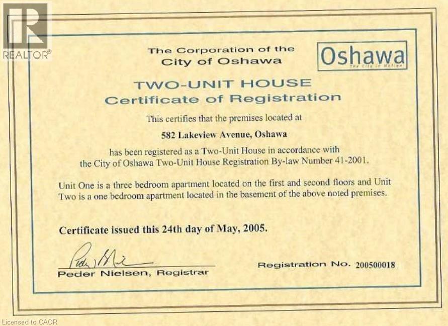 Rare-find!! Pie-Shaped Lot!! ~57ft Wide At Rear! LEGAL BASEMENT APARTMENT (2-Unit House) Registered With The City Of Oshawa!! (Registration #: 200500018) 1,789Sqft Living Space (1,156Sqft+633Sqft)! 2 Self-Contained Units, Separate Entrance to Legal Basement Apartment, Pie-Shaped Lot~57Ft Wide At Rear, Over 4,100Sqft Lot, Attached Garage + 2-Car Wide Driveway, Steps To Stone Street Park With Waterfront Trails Of Lake Ontario, Minutes To Oshawa Go-Station, Shopping At Oshawa Centre & Hwy 401 (70071380)