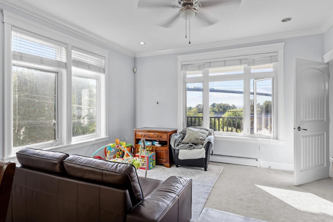 Perched on a 5,920 sq.ft. elevated corner lot with mountain and Alex Fraser Bridge views, this spacious Nordel home blends comfort, flexibility, and strong income potential. The main floor offers a bright living room, large kitchen, and a convenient primary bedroom. Upstairs boasts 4 generously sized bedrooms, each with its own ensuite. The expansive 1,410 sq.ft. basement with 6'5" ceiling provides exciting possibilities-whether you choose to transform it into a media room, or customize it to suit your lifestyle needs. Walking distance to schools, parks, shops, and North Delta Community Park. (32353417)
