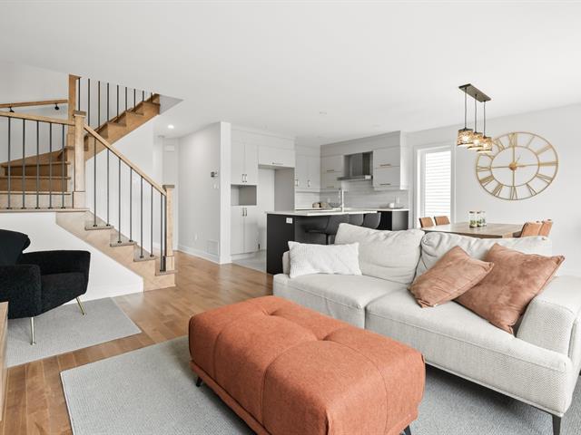 Welcome to Quartier Quatre Saisons, townhouses by Les Habitations Sylvain Ménard & Groupe Houde. Quality construction offering a spacious open-concept layout, modern finishes, and 3 bedrooms. Buyers may choose finishes to personalize their home. Located on a quiet cul-de-sac bordered by nature and next to Parc des Nature, the setting offers tranquility and mature trees. Quick access to Highway 20, just 10 minutes from Vaudreuil and 5 minutes from Valleyfield. Photos for reference only. All sales subject to the builder's contracts and specifications. GST/QST must be added to the asking price (57818457)