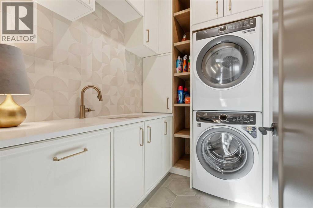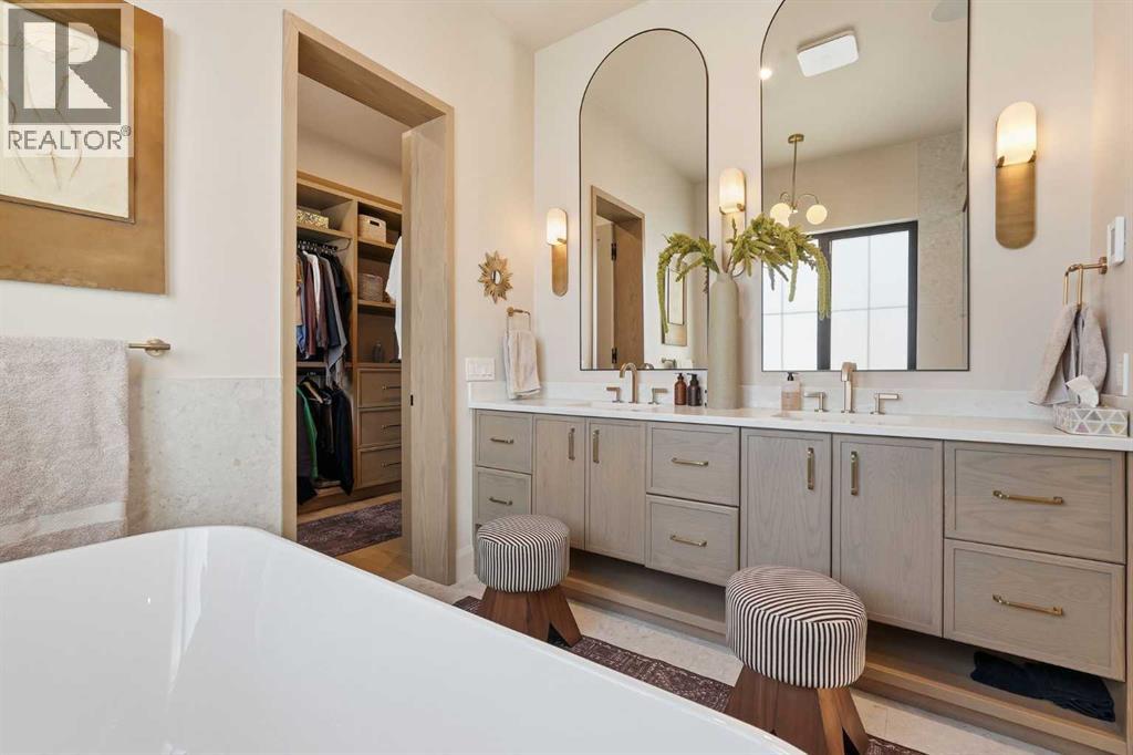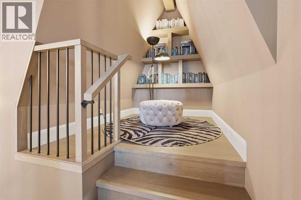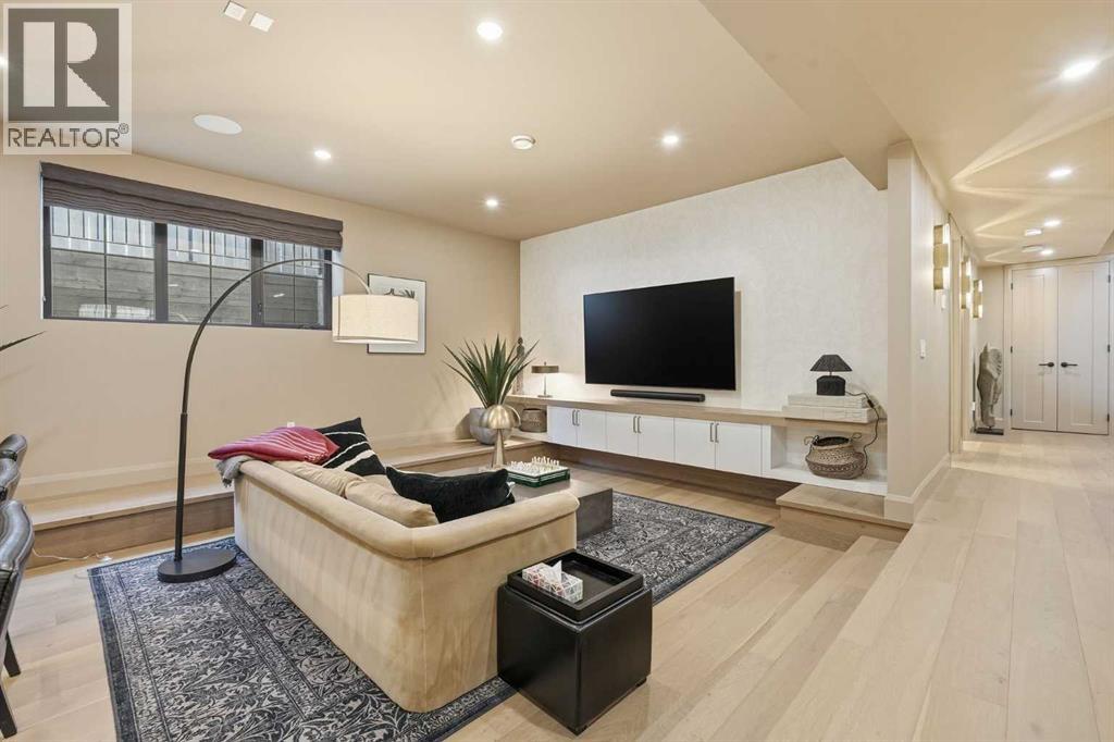 Enduring sophistication defines this beautifully crafted 2+2 bedroom residence in North Glenmore Park, offering more than 4,200 sq ft of refined living space with exceptional attention to detail throughout. The main level showcases wide-plank hardwood floors and soaring ceilings, setting the stage for an impressive living room highlighted by a dramatic vaulted ceiling with chandelier, a floor-to-ceiling window, and a stunning Venetian plaster fireplace. The thoughtfully designed kitchen is a chef’s delight, appointed with custom oak cabinetry, premium quartz countertops, a generous island with eating bar, high-end appliances, and a well-equipped butler’s pantry. Adjacent to the kitchen, the spacious dining area easily accommodates gatherings of family and friends. The main floor primary retreat provides a serene escape, complete with a walk-in closet and a luxurious 6 piece ensuite featuring in-floor heat, dual sinks, a freestanding soaker tub, and an oversized shower with heated bench and floor. A second bedroom with its own 4 piece ensuite offers ideal comfort for guests. A stylish 2 piece powder room, a practical mudroom with ample storage, and a dedicated laundry room with sink and cabinetry complete the main level. Upstairs, the loft area offers an inviting space to unwind, featuring a family room, games area, wet bar, 2 piece bath, and a charming library nook. The fully developed basement extends the home’s versatility with heated floors, a family/media room with bar and wine storage, and a separate games area—perfect for movie nights or entertaining. A glass door behind the bar leads to a room roughed in for a future sauna and shower. Two additional bedrooms, two 3 piece baths (including one ensuite & the other with a steam shower), and a second laundry room complete the lower level. Additional highlights include central air conditioning, custom draperies, two vacuum systems with attachments, and built in speakers. Outdoors, enjoy custom window well railings, an underground irrigation system, a sunny south-facing front patio, and a private back deck with natural gas BBQ hook-up and a beautiful wood-burning fireplace. Parking is effortless with a triple attached garage wired for 220 volt service. Ideally located within walking distance to Glenmore Athletic Park and close to two golf courses, top-rated schools, shopping, public transit, and major routes including Crowchild and Glenmore Trails, this exceptional home offers an unparalleled blend of luxury, comfort, and convenience. (31553359)