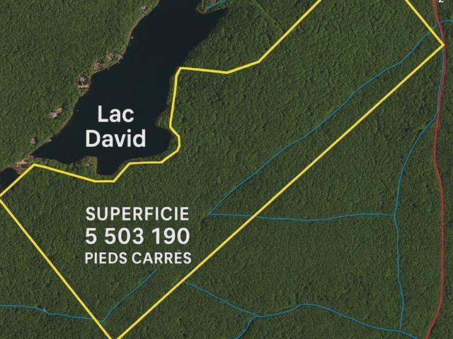 Terrain boisé de plus de 5,5 millions de pieds carrés, bordé par 2 lacs dont le lac David. Potentiel incroyable pour projet privé ou récréatif. Aucun service en place, l'acheteur devra faire ses vérifications pour l'usage souhaité. Situé en zone forestière. Possibilité d'avantages fiscaux grâce à un programme de taxation forestière (à confirmer). Un véritable havre de paix au coeur de la nature, à découvrir par ceux qui rêvent d'espace, d'intimité et d'un investissement à long terme. (50578569)