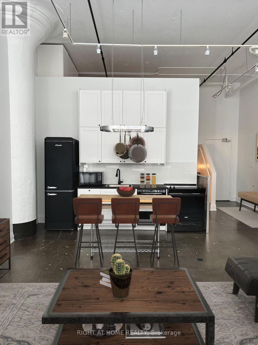 Welcome to the Historic WM. Wrigley Gum Lofts! This rarely available south facing authentic industrial loft has 1 bedroom and all the features of a real loft - steel-frame windows, mushroom columns, polished concrete floors and 14-foot ceilings! Custom-built upper bedroom mezzanine with b/i closets. Huge brand new bathroom with double sinks! This work/live building is in the heart of hip and happening Leslieville. Walk to restaurants, cafes, boutiques and farmers markets. TTC at the door! (41988437)
