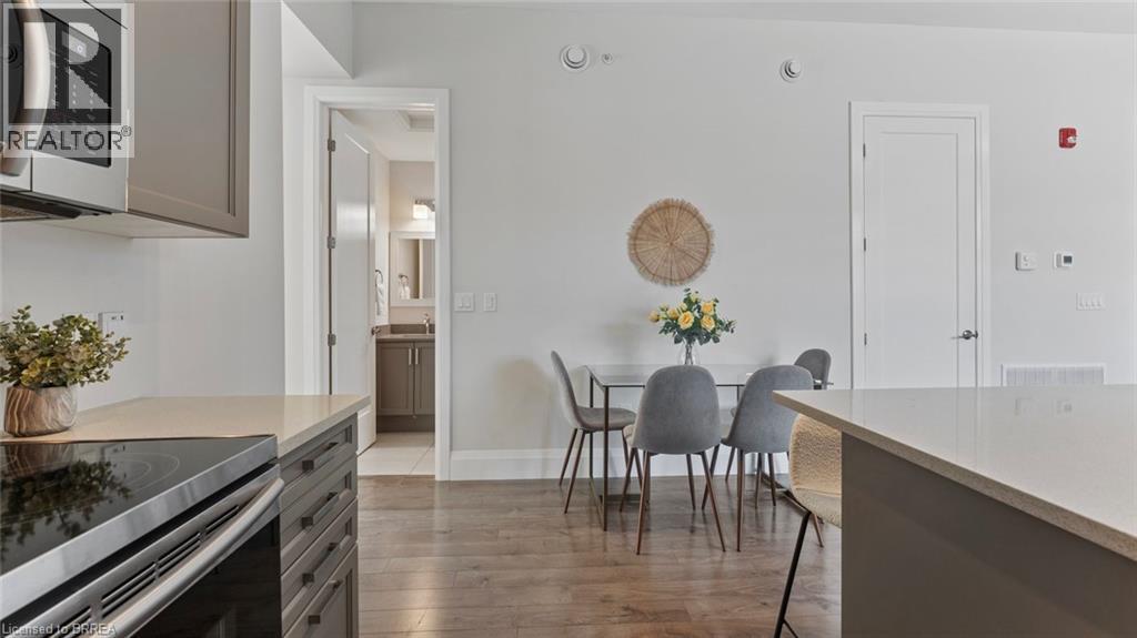 Experience effortless modern living in this stylish ground-floor 2-bedroom, 1-bathroom suite—designed with both comfort and convenience in mind. Featuring soaring ceilings and a bright, open-concept layout, the spacious living and kitchen area is ideal for entertaining guests or unwinding in style. Sleek contemporary finishes, abundant natural light, and a generous private balcony create an inviting atmosphere throughout. This unit comes complete with all appliances, in-suite laundry, owned on demand water heater as well as two dedicated parking spaces—a rare and valuable feature. Enjoy access to outstanding shared amenities, including the expansive BBQ patio —perfect for outdoor dining and social gatherings. Ideally located near the Grand River, Rotary Bike Park, Wilkes Dam, Brantford General Hospital, and a range of popular restaurants, this home places everything you need right at your doorstep. (70073058)