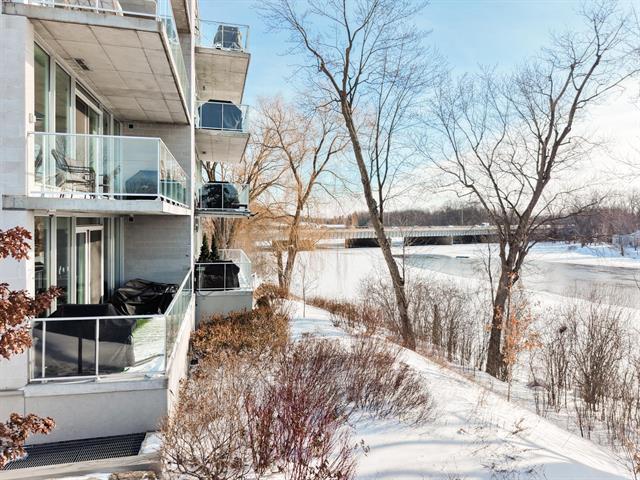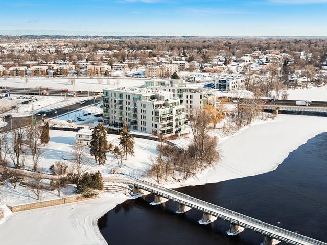 Breathtaking waterfront view -- Welcome to this magnificent condo offering over 1,370 sq. ft., located along the Rivière des Mille-Îles and featuring a spacious 182 sq. ft. balcony. Situated in the prestigious O Quai du Nord project, this property offers two bedrooms, including a primary suite with walk-in closet and private ensuite bathroom, as well as a second full bathroom. A closed office space, a stunning kitchen with an oversized quartz countertop and a back kitchen complete the unit. The condo also includes two garage spaces, access to a gym, and an outdoor in-ground pool. (42776212)