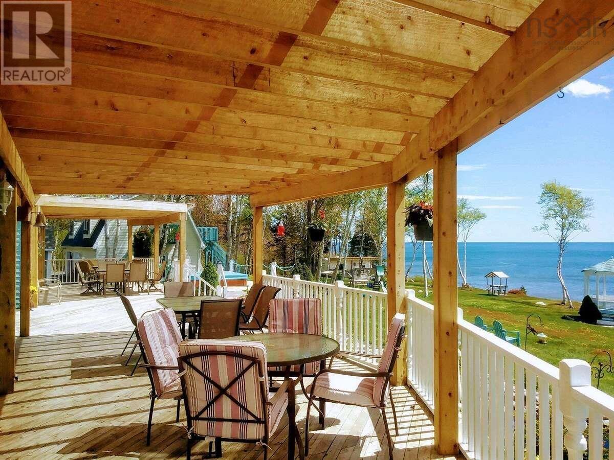 For more info, please click "More Information" button. The Sea Parrot Oceanview Manor Fully Furnished/Turnkey Awaits is new owners! This stunning oceanfront resort has 400 ft of accessible waterfront with 14.5 acres for privacy or development potential. Located directly on the world renowned & popular tourist route, the Cabot Trail of Cape Breton, Nova Scotia. Close to CB Highland Links, Cabot Links & Cabot Shores & the highly anticipated Cape Smokey Ski Resort revitalization. The original owners have operated the Sea Parrot for over 15 years, and have built an international clientele & a repeat/ referral client base. This turnkey package includes everything you need to seamlessly take over this potential successful business, including furnishings, supplies, equipment, established business number & top ten ranking URL. Year-round accommodations of 15 rooms include 5 cottages with full kitchens (4x2 BR and a 1 BR that is wheelchair accessible); 3 studio apts. with kitchenettes & ocean view balconies; 1 oceanfront 32 ft. camper; 1 converted, literal Boat house; PLUS a 2 bedroom house next door with private oceanfront; Owners willing to advise through business take over. HST partially applicable on the purchase price. The main house embraces the ocean views, with two story windows from the great room. Here a 2-way wood burning fireplace that is shared with the master bedroom. A Bose sound system, floor to ceiling bookshelves, wet bar & wine fridge complete this natural gathering space. Slate floors with in-floor heat throughout the main floor. Kitchen has stainless steel appliances, including two ovens, is open to great room, and has tiled island with seating, which is great for entertaining. Full length master bedroom also includes spa like ensuite with jet tub & tiled double shower; Ocean view can be enjoyed through the garden doors, which lead to 3000 sq ft covered, wrap around deck, sauna & hot tubs Separate dining room large office, ½ bath. One of a kind! (231874956)