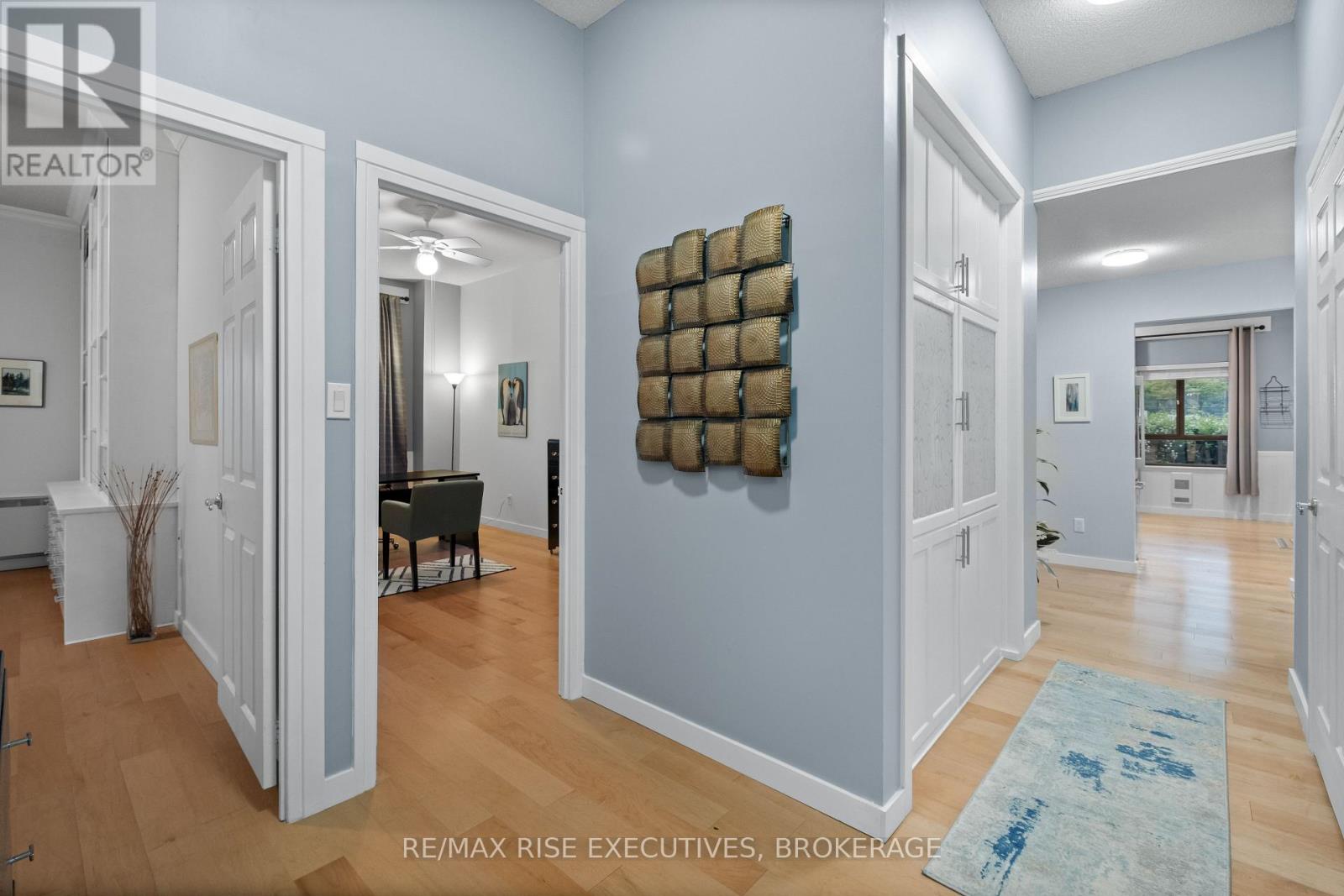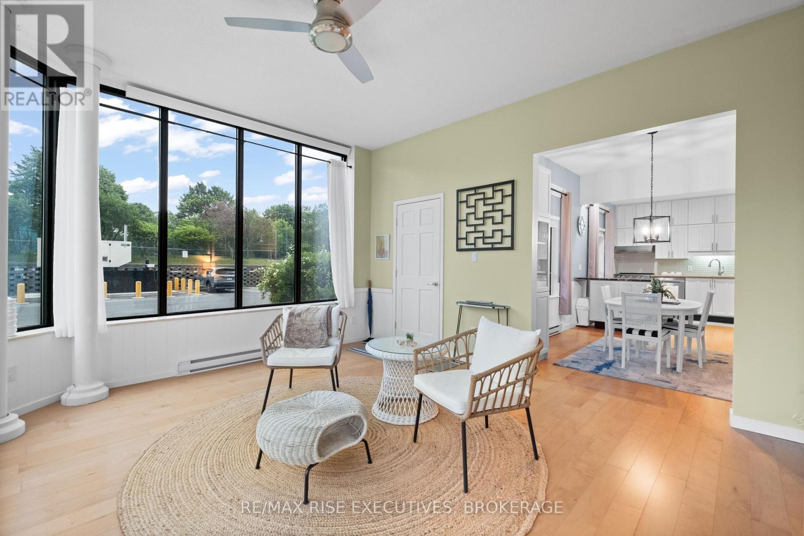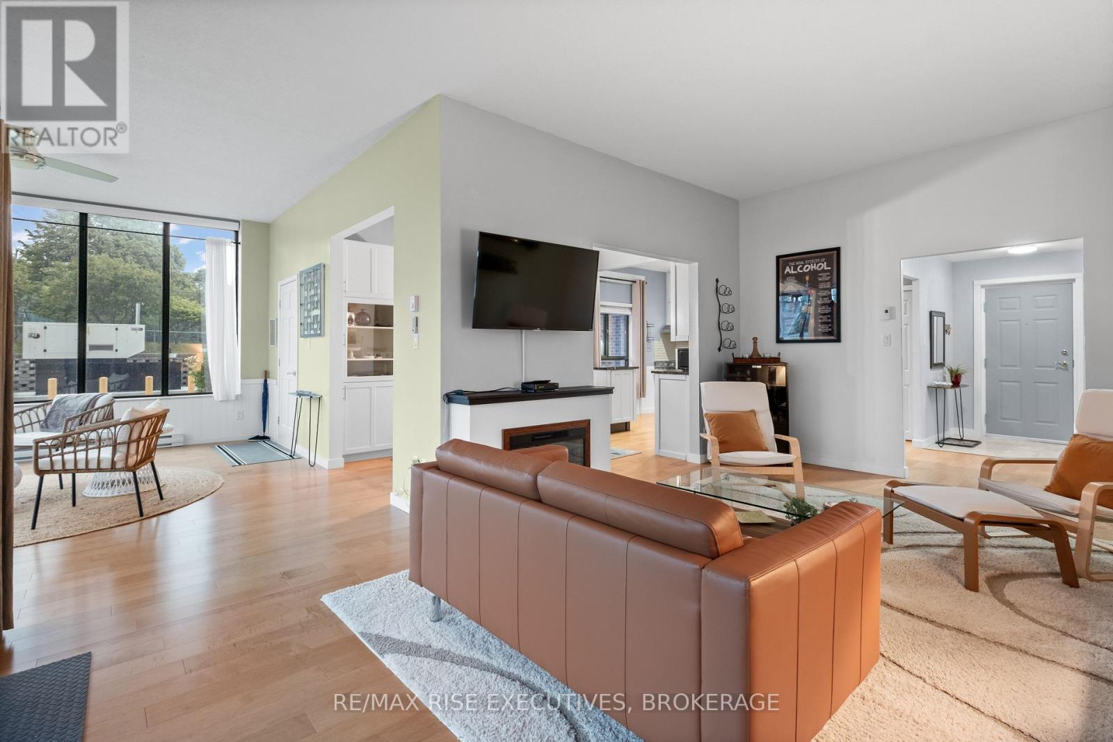 Stunning Condo with Lake & Golf Course Views in Prime Kingston Location. Welcome to one of Kingston's most breathtaking condos, offering panoramic views of Lake Ontario, nearby parks, the Rideau Trail, and the Cataraqui Private Golf Club. This beautifully updated ground-floor unit features 10 ceilings, engineered hardwood throughout, and two private patios perfect for pet owners (25 lb max) or outdoor enthusiasts, with convenient side-door access. The spacious foyer leads into a modern kitchen with granite countertops, under-cabinet lighting, and stainless steel appliances (all new in 2020), including a stackable washer and dryer. The open-concept dining area with built-in cabinetry flows into the Atrium which is all windows overlooking the golf course. A bright and inviting family room features large patio doors and a built-in electric fireplace. The generous primary bedroom includes a custom built-in unit, walk-through closet, and a renovated 3-piece ensuite (2021) with a walk-in shower and heated tile flooring. A second spacious bedroom and updated 4-piece main bathroom also with heated floors complete the layout. Additional features include an in-unit storage room, two new air exchangers (2020), high-efficiency baseboard heating, one underground parking space, and a storage locker. Enjoy resort-style amenities: indoor pool, jacuzzi, sauna, gym, games room, and a penthouse library, guest suite, underground parking, car wash, solarium and more! A rare opportunity for luxurious, low-maintenance living in a premium Kingston location! (41990187)