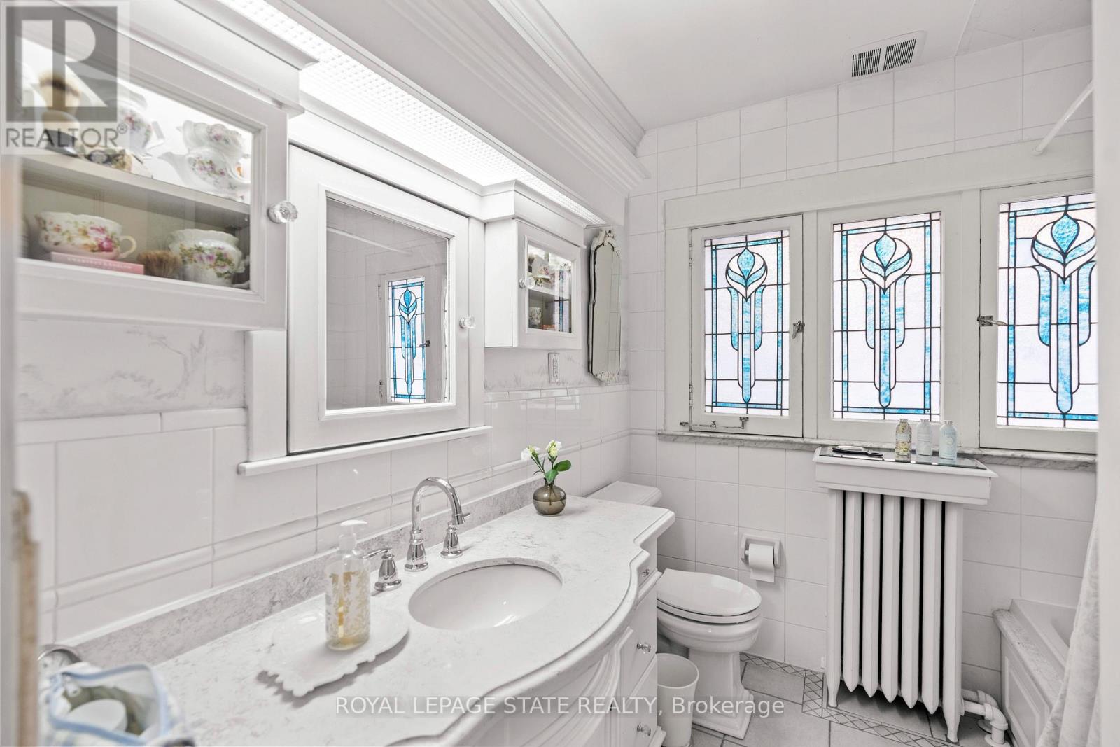This stately 2.5-stry residence sits on a mature 46' x 85.33' lot in Hamilton's prestigious Durand neighbourhood. Showcasing timeless curb appeal, the front walkway leads to a covered porch framed by Doric columns & an entry door w/ wrought-iron grillwork. Inside, a grand foyer w/ crown moulding, a sweeping staircase & French doors introduces elegant principal rms. The formal liv rm feat a gas FP, an intricate mantle w/ hidden side cabinet, & windows overlooking both gardens. The adjoining din rm impresses w/ built-in cabinetry, leaded stained glass, and rich millwork throughout. The kitchen is a showpiece, featuring heated limestone floors, custom cabinetry w/ beveled glass, marble counters, undercab lighting, pantry, & premium S/S appliances incl a Viking gas range, Sub-Zero fridge, & Miele d/w. Surrounded by windows, it opens to a covered porch w/ a Phantom screen, perfect for indoor-outdoor living. A handy mudroom w/ dbl mirrored closet completes the main lvl. Heading up the main staircase, a landing of stained glass welcomes you to the 2nd level, feat a 25.9' x 13' primary suite w/ sitting area, dual closets, & access to a bright den/sunroom (heated flrs). 2 add'l bdrms - one w/ a bay window & ensuite, the other with garden views - plus a 4-pc bath w/ a jetted tub, stained glass, & hand-painted murals complete this lvl. The 3rd lvl offers a private bdrm retreat w/ a 3-pc ensuite, skylights, gas FP, storage, & cozy sitting nooks. The lower lvl adds laundry w/ custom cabinetry, a 2-pc bath, storage & workshop space. Outside, enjoy a private yard w/ a fountain, covered composite porch, retractable awning, gas BBQ hookup, detached garage + surfaced parking for 2 & security lighting. Add feat incl: hardwood flrs, custom window coverings, c/air, HEPA air purifier, a security sys & more. Walkable to the Locke St cafés, boutiques, art galleries, hospitals, GO Transit, parks & trails - Durand offers historic character & an unmatched lifestyle of quiet sophistication. (41990281)