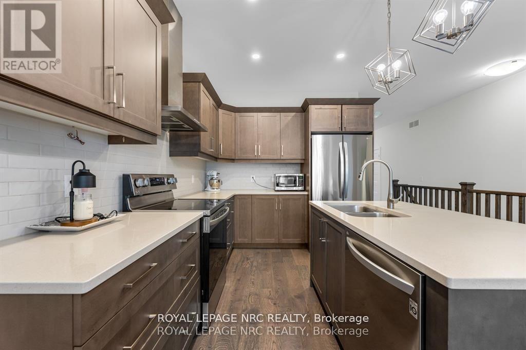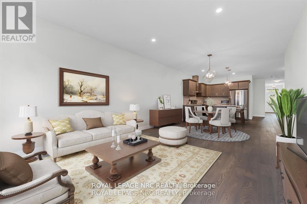 The freehold bungalow townhouse you have been waiting for has arrived! Built by the incredible team at Rinaldi Homes, this 2 bedroom townhouse certainly stands out from the crowd. From the moment you arrive you will be impressed by the gorgeous long interlocking stone driveway. Inside the home you will find gleaming engineered hardwood flooring in all main living areas, 9' ceilings on the main floor, gorgeous lighting fixtures and perfectly placed pot lighting, 2 large bedrooms (primary bedroom complete with walk-in closet & 4 piece ensuite), another 4 piece bathroom, a main floor laundry room, a stunning chef's kitchen with quartz counters and stainless steel appliances. Enjoy great conversation and a bbq on the home's spacious covered deck that overlooks the beautifully landscaped backyard. The partially finished basement offers a massive rec room with an electric fireplace, another spacious walk-in closet, and a huge storage room that could easily be finished into more living space (also has a 3 piece rough-in). Easy access to highway 406, shopping, restaurants and so much more. Don't delay! Join the Merritt Meadows community today! (41990934)