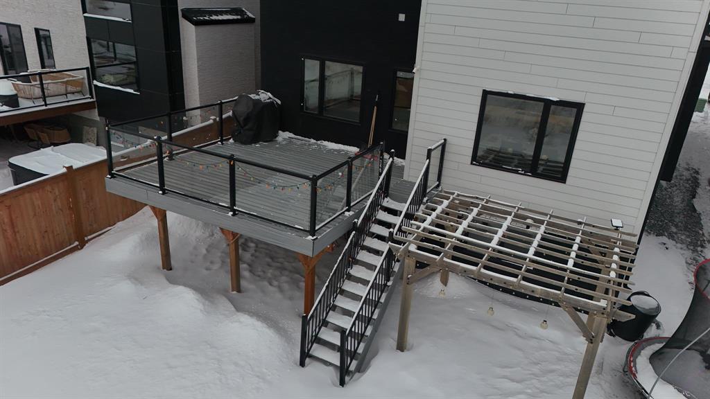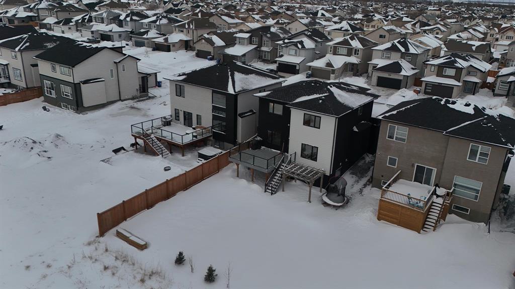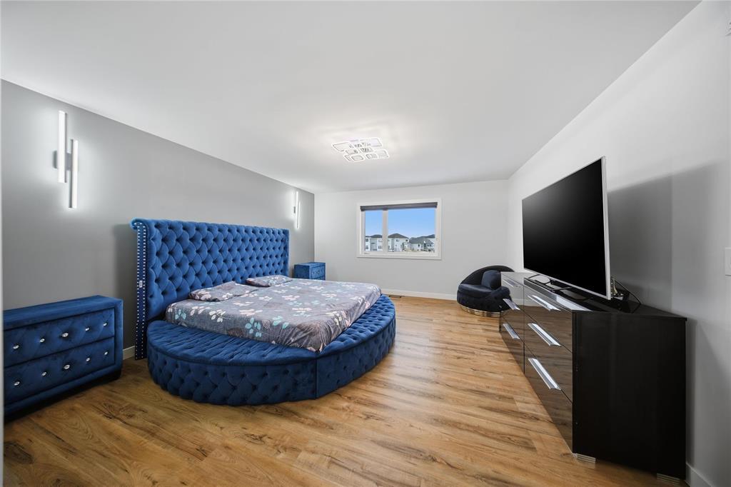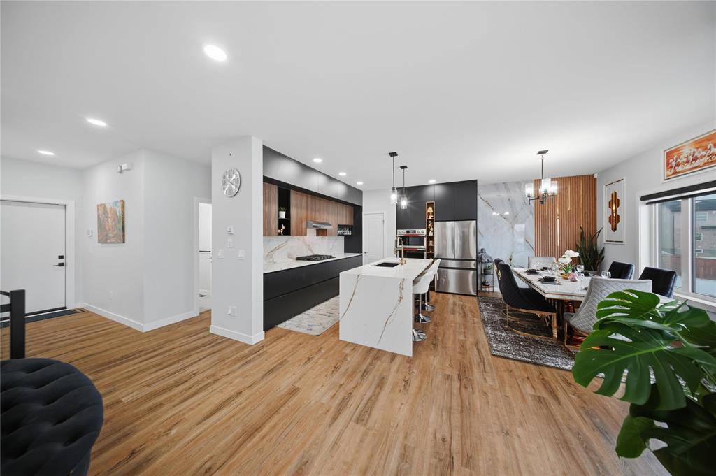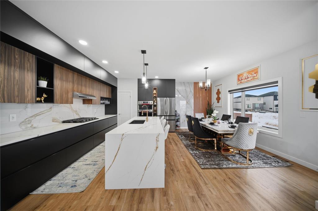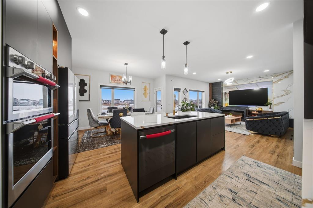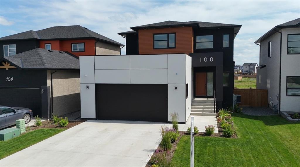 3M//Winnipeg/Showings Start Now. Offers to be presented as Received. Open house 7th February & 8th February 2PM-4PM. Welcome to Exquisitely designed 2,088 sq. ft. luxury residence featuring 4 bedrooms and 3 full bathrooms, including a rare main-floor bedroom with full bathroom ideal for refined multi-generational living. This elegant home showcases premium luxury vinyl plank flooring, black windows, Modern lightning, sleek glass railings, and a statement tiled fireplace. The chef-inspired kitchen offers high-end finishes with quartz countertops throughout, built-in oven and microwave, and modern cabinetry. Upstairs, a spacious loft ideal for a second living area or home office. The primary suite impresses with a spa-like standing tile and glass shower and Upstairs you will find two more Spacious bedrooms and full washroom. Enjoy upscale outdoor living with a composite deck overlooking a desirable lookout lot with beautiful lake views, plus a concrete under the deck, patio and concrete backyard pad for added functionality. Set within a vibrant, well-connected community close to everyday amenities, this home offers the perfect balance of luxury, comfort, and lifestyle A must see. All measurements are +/- (231875636)