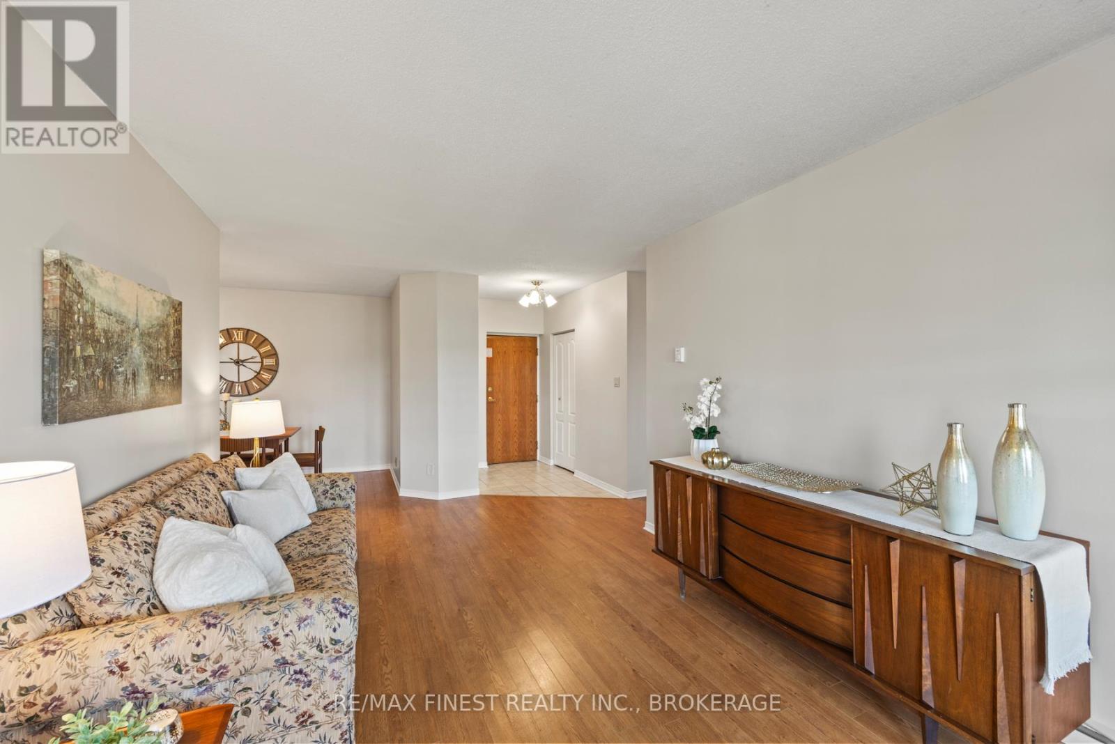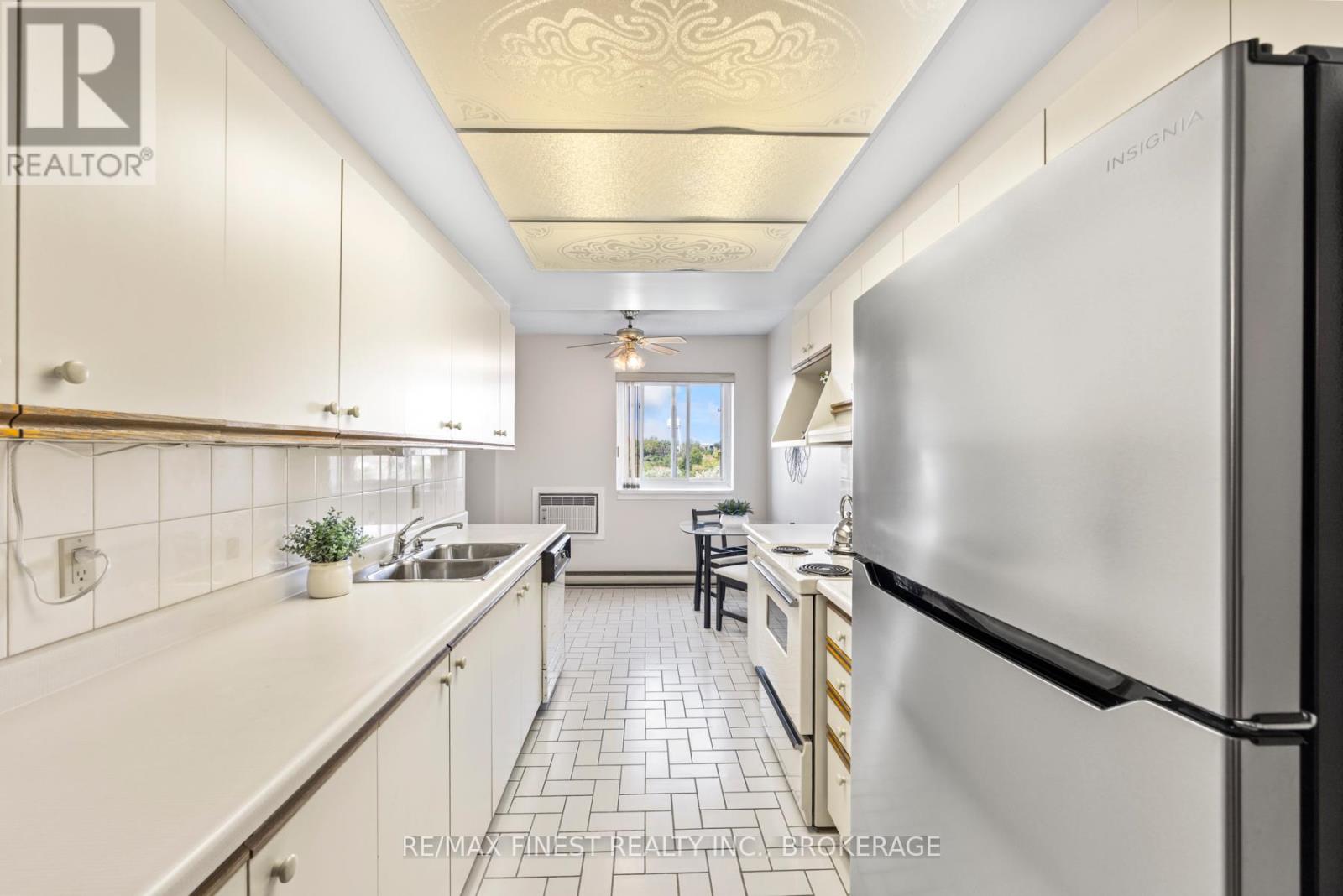 Welcome to this bright and spacious top floor, corner unit condo located in a central location in Kingston's west end. With over 1000 square feet and offering 2 bedrooms and 2 full bathrooms, this well-maintained home is filled with natural light and boasts great views with open vista to the north over green space and the Cat Mall. Take advantage of the best views in the building from the enclosed sunroom where you can relax year-round and take in stunning sunset views. The primary bedroom suite includes large closets and a private ensuite bath with a walk-in shower. This quiet concrete-constructed building ensures solid constructions and excellent sound insulation with no noise between units. This condo includes owned (covered) parking, a separate storage locker, and a functional layout ideal for both daily living and entertaining. With just 24 units, this building has a close-knit community and neighbours that look out for each other providing both added security and an active social scene. Enjoy unbeatable convenience right in the middle of the west-end, with shopping, restaurants, transit, and essential services all close by. Whether you're looking to downsize, invest, or step into homeownership, this wonderful property has it all! (41991285)