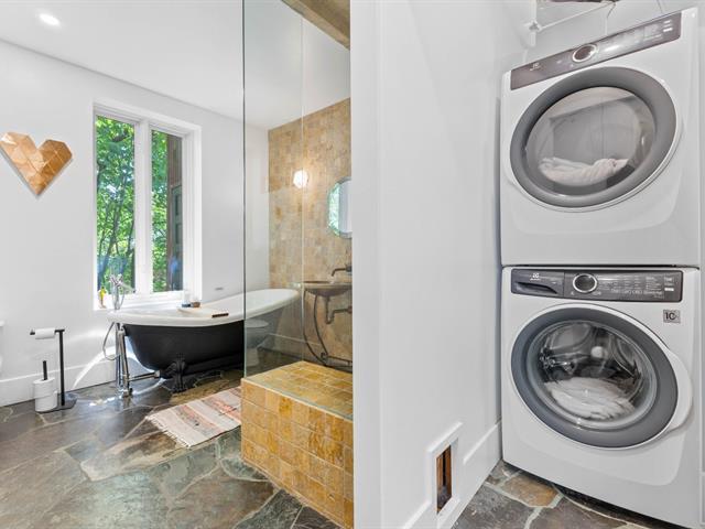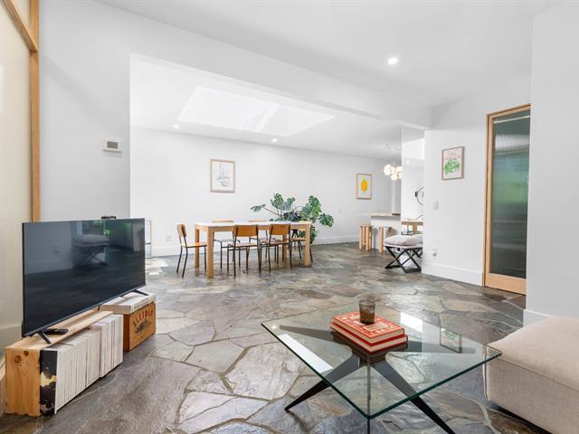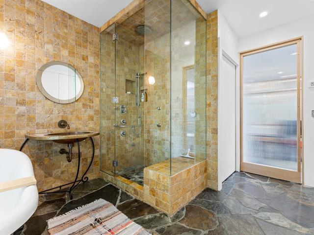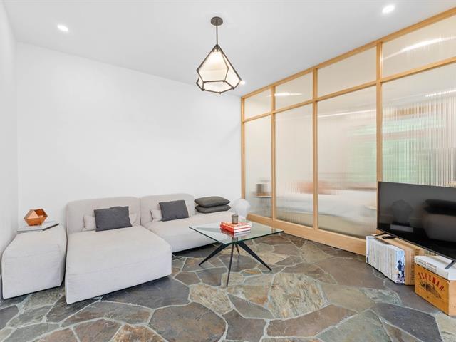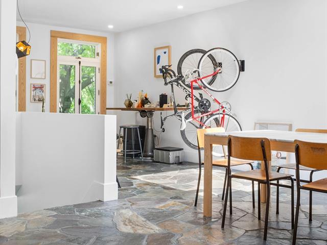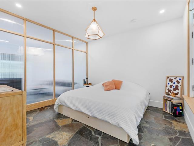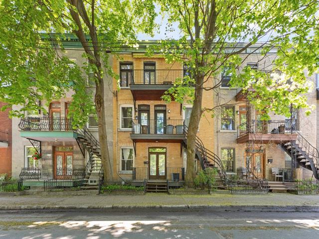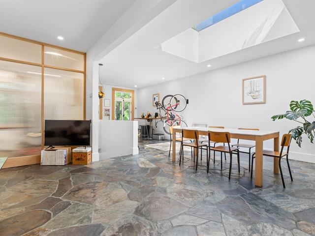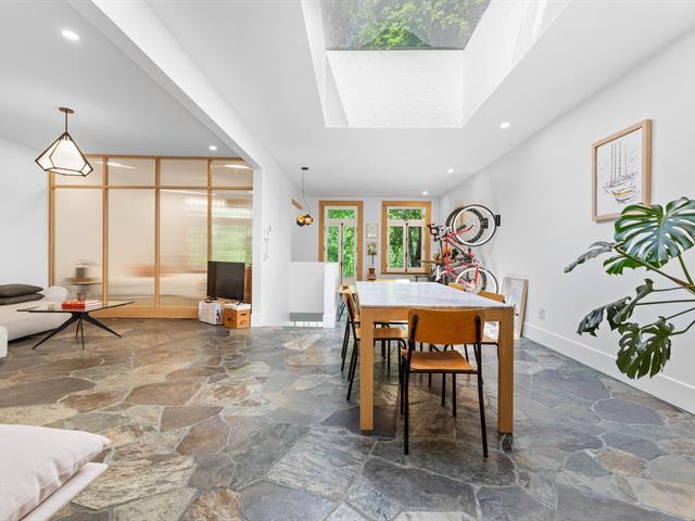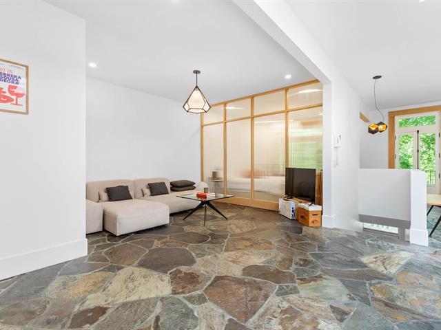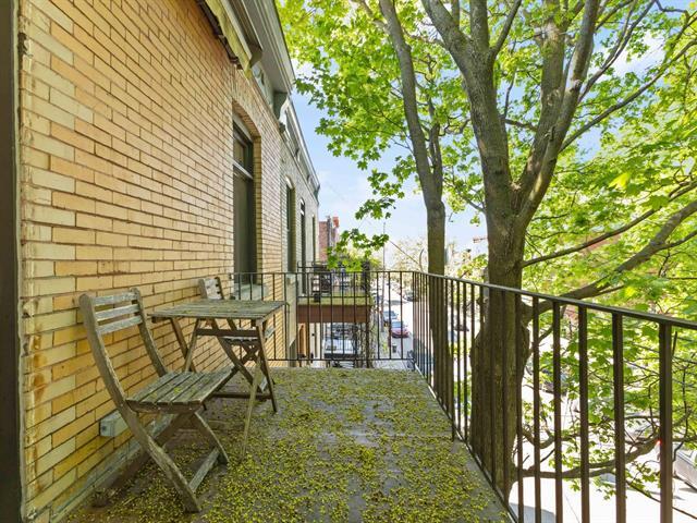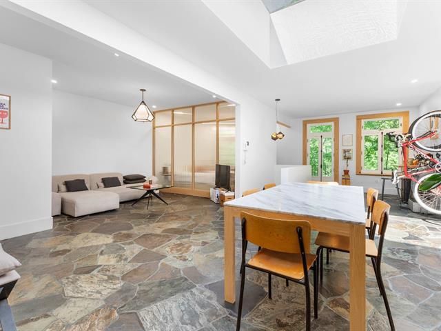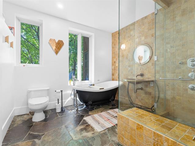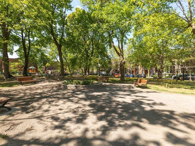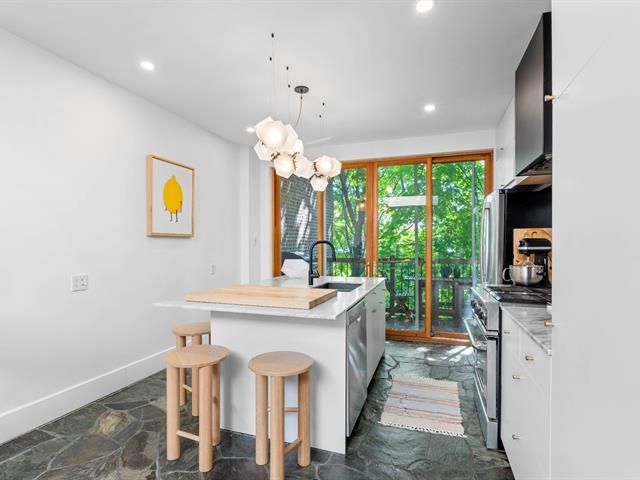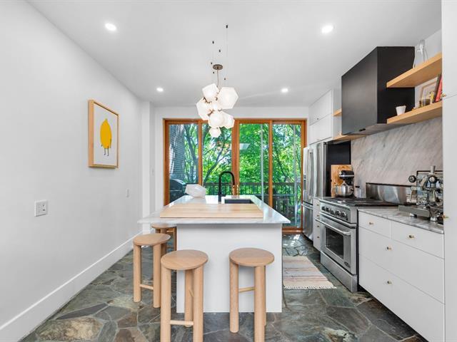 Splendid and luxurious 1000 sqft condo in the heart of Plateau/Petit Laurier! The living space is open, bright, very welcoming and the big kitchen island makes the space multi-functional. A giant skylight and beautiful windows are not to be missed! Directly facing Parc Lorimier this condo gives the illusion of a tree house! Third and top floor of a triplex with large front and rear balconies. A neighborhood popular for its tranquility. Heated slate floor, very resistant. Marble counters and island. Walk-in shower and free-standing bath, plenty of storage and an office area. (41402855)