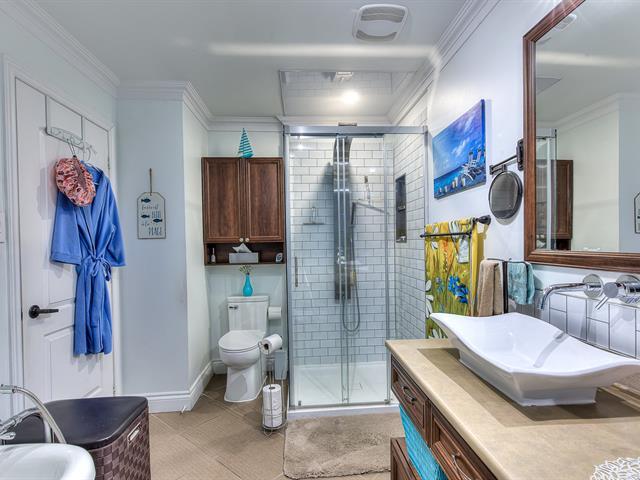 Spacious condo offering over 1,283 sq. ft. of living space. Located on the ground floor, it features two wellsized bedrooms. Hardwood floors and a granite countertop that add a touch of modernity and elegance to the openconcept layout. The heart of the unit is its large, inviting living room, enhanced by a gas fireplace that creates a warm and comfortable atmosphere. The bathroom, equipped with heated flooring, also includes a new contemporarystyle shower and double sinks. Direct access to the garage from inside the condo, with an epoxycoated floor and an electric vehicle charging station, as well as an exterior parking space. (49121506)