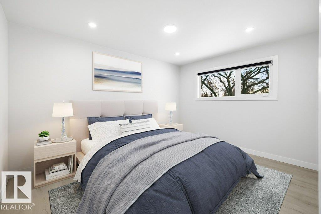 Welcome to Elmwood and this stunning, fully renovated 4 bed 2 bath open-concept bungalow. Designed for both comfort & style, this home is completely transformed & thoughtfully updated throughout; the home features: luxury vinyl plank flooring, new windows, modern baseboards & trim, upgraded interior doors, striking feature-wall fireplace, stylish lighting, fresh paint throughout, custom cabinetry, beautifully renovated bathrooms w/new vanities/sinks, elegant quartz countertops & sleek zebra blinds. Enter the show-stopping kitchen featuring two-toned matte cabinetry, SS appliances & impressive 76” quartz island ideal for gatherings & everyday living. 3 sizeable bedrooms & elegant 4pc bath. Fully finished basement w/ additional bedroom & gorgeous walk-through attached bathroom provides the perfect space for entertaining, relaxing, or hosting guests. Exterior upgrades complete the look w/freshly painted stucco, new siding, roof (2022), landscaping & refreshed garage. Just move in & enjoy! (33745280)
