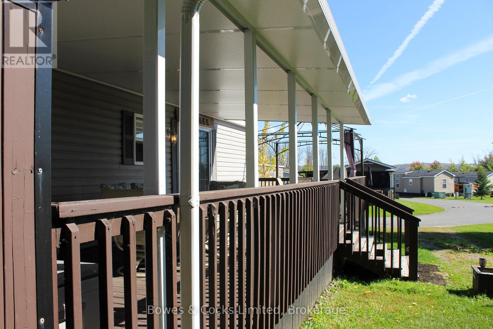 Welcome to your perfect seasonal retreat in Bellmere Winds Trailer Park! This well-maintained 2-bedroom unit sits on a spacious lot and comes fully furnished for turnkey enjoyment. Inside, you'll find a cozy fireplace, a full kitchen with a coffee bar/storage area, and a bright living space. The second bedroom features bunk beds, and a 3-piece bathroom adds convenience. Enjoy outdoor living on the large roofed deck that wraps around the front, plus a gazebo and shed for added storage and relaxation. Parking for two vehicles included. Located steps from top-tier amenities: pools, a gym, laundry, sports courts, a playground, a communal fire pit, and more. 6 Golf Course memberships are included with your yearly park fees, that's a total of 26 weeks of free golfing! Whether you're relaxing by the fire, hitting the green, or enjoying park events, this trailer offers comfort, community, and unbeatable value. Prime location close to everything -don't miss this opportunity to own a piece of Bellmere Winds paradise! (41992156)