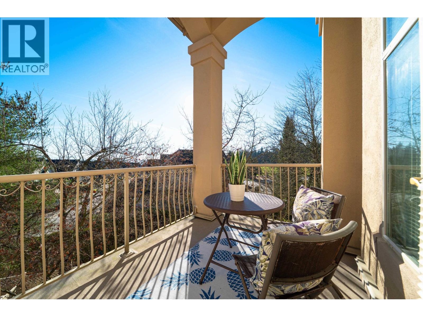 Bathed in light and graced with breathtaking Mt Baker views, this southeast, Top floor, corner home feels like a retreat in the sky. Soaring vaulted ceilings and dramatic oversized windows create an airy spacious feel, while the crown moldings and tri-ceilings add unique character. The primary bdrm has an ensuite with soaker tub and a private deck. Well separated large 2nd bdrm and a bonus den/office offer privacy and flexibility, while the open kitchen with SS appliances , granite counters and a second covered deck provide effortless entertaining and beautiful sunrises. Set within a refined Westwood Plateau, pet-friendly community with nearby scenic trails, schools and bus system With tranquil water features, wide corridors, stately pillars, and golf course just beyond, everyday living here feels quietly luxurious and endlessly inspiring. Call your agent today for your private viewing! (32356989)