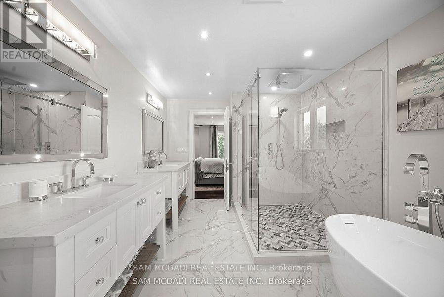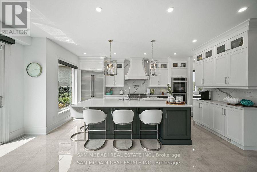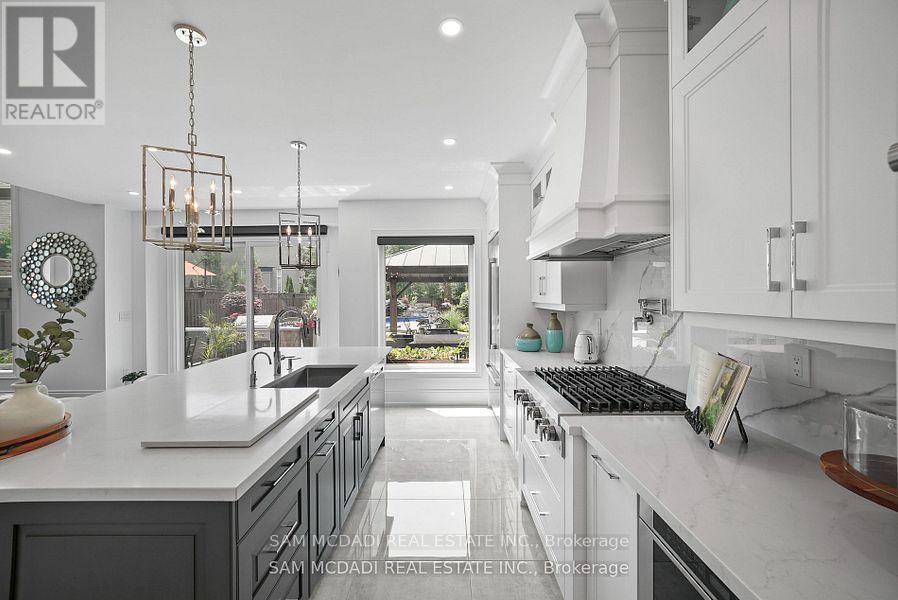 Welcome to this beautifully renovated 4+1 bedroom home nestled in the highly sought-after Meadowvale Village community. From the moment you step inside, you'll be impressed by the attention to detail and quality finishes throughout. The main floor boasts an open-concept layout, perfect for modern living and entertaining. The gourmet kitchen is a chefs dream, featuring granite countertops, a central island, and high-end stainless steel appliances. The kitchen opens seamlessly to the sun-filled family room with soaring vaulted ceilings, oversized windows, and a cozy fireplace. A dedicated serving area connects to the elegant dining room, highlighted by a trayed ceiling ideal for hosting special gatherings. Walk out from the kitchen to your private backyard retreat, complete with an inground pool, large lounging area, fully equipped outdoor kitchen, and a generous green space perfect for kids or pets. Upstairs, you'll find four spacious bedrooms, all with ample closet space, and beautifully renovated bathrooms with modern finishes. The fully finished basement offers even more living space with a fifth bedroom, 2-piece bathroom, and a media/movie area for family fun or entertaining. Located minutes from Hwy 401, top-rated schools, parks, and the Heartland Town Centre this home truly has it all! (41992790)