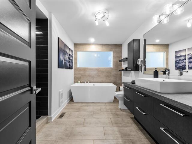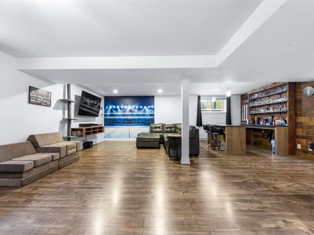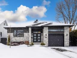 IMPECCABLE PLAIN-PIED CLÉ EN MAIN ! Comprenant 5 chambres à coucher, dont 3 à l'étage, 2 salles de bain complètes, de vastes pièces très fenestrées à aire ouverte avec un magnifique foyer au gaz trois faces. Grande cuisine avec îlot central et comptoirs de quartz. Sous-sol 100 % aménagé. Système central avec thermopompe. Magnifique cour intime et clôturée avec haie mature, piscine 18 pieds et cabanon. Le tout situé dans un secteur recherché, à proximité des écoles primaires et secondaires, des parcs et de toutes les commodités. RECOMMANDATION PERSONNELLE, À VOIR ! (50227001)