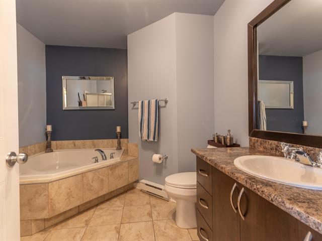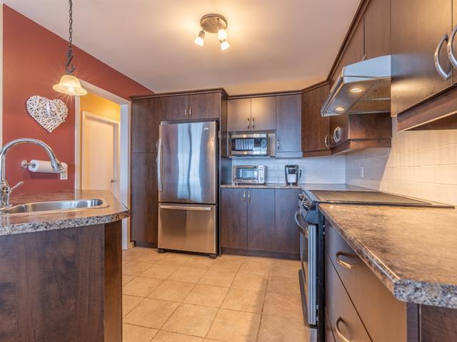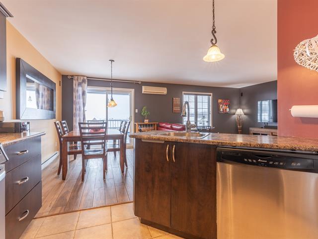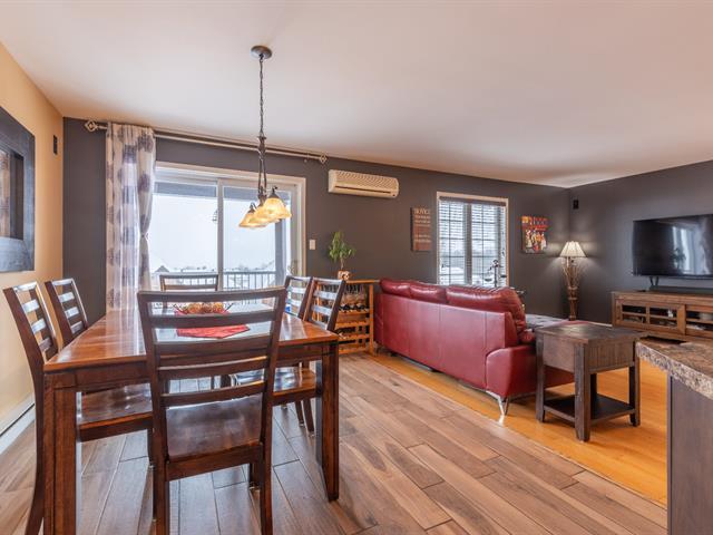 ** PROJET AU SOMMET BOISÉ ** Rare find - Stunning top-floor condo with a GARAGE! Open concept with engineered hardwood floors, kitchen with lunch counter, wall-mounted A/C, washer/dryer space, storage. Large terrace with panoramic views! Two parking spaces (indoor and outdoor). Quiet area surrounded by nature, no rear neighbours (Pincourt Golf Course). Welcome! (50805750)