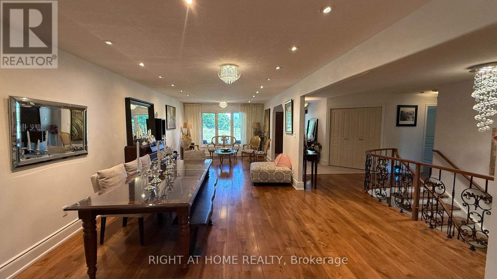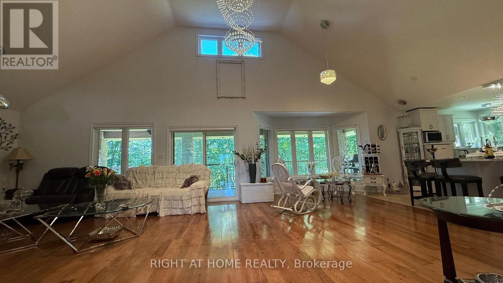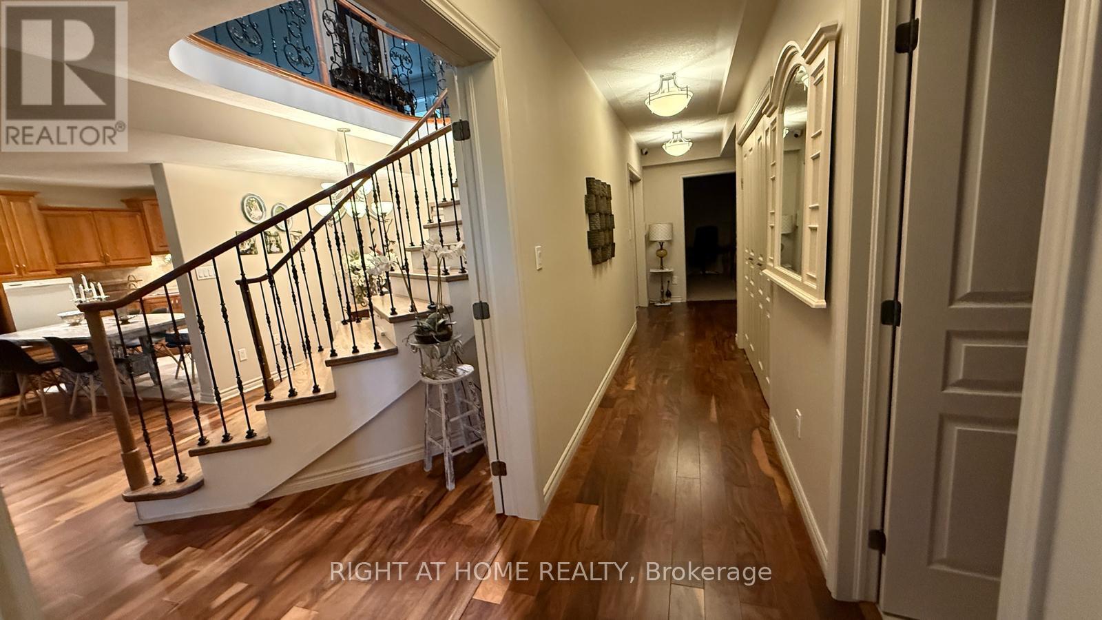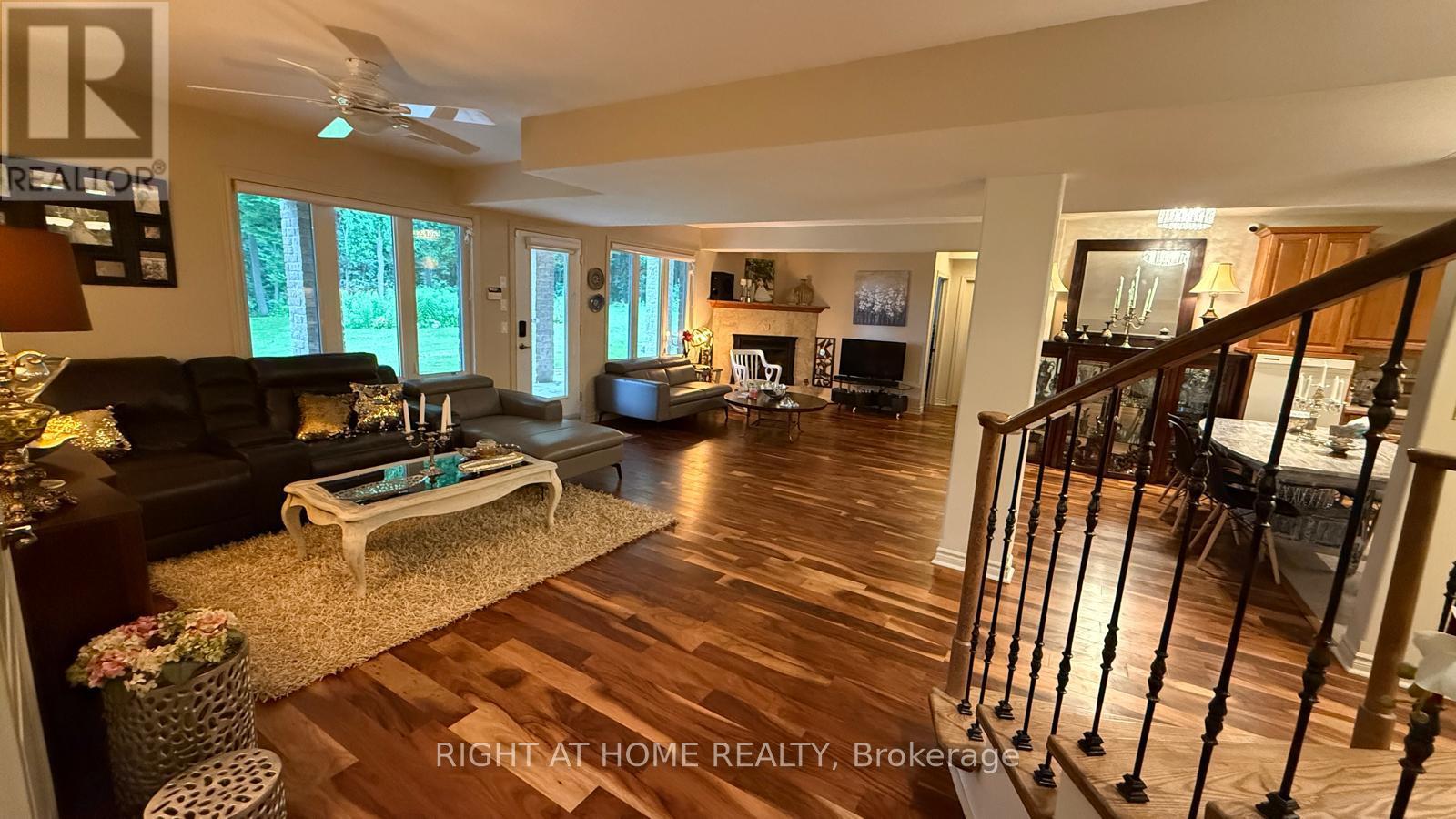 Welcome to 1453 Millenium Court! This exceptional custom-built home by James Selkirk is nestled on a beautifully landscaped premium cul-de-sac lot in Kingston's desirable east end. Just minutes from Highway 401 and within walking distance of the historic Kingston Mills locks on the Rideau Canal, this property offers both convenience and lifestyle.Inside, the main floor showcases hardwood flooring throughout, an open-concept layout, a chef's kitchen with quartz countertops and abundant cabinetry, a formal dining room, and a vaulted living room with a cozy gas fireplace. Patio doors open to a 60-ft covered deck with BBQ gas hookups, perfect for entertaining. Two spacious bedrooms are located on this level, including a master suite with a walk-in closet, a luxurious 5-piece ensuite, and direct access to the patio overlooking the wooded backyard.The lower level features a complete in-law suite with open-concept design, in-floor radiant heating in the basement and bathrooms, four additional bedrooms, two full bathrooms, walk-out access to the backyard, and a walk-up to the garage.This property boasts a 5-car garage with 3 doors and space for 15 additional vehicles on the driveway, making it ideal for large families, guests, or hobbyists. Comfort is ensured year-round with an air-handler heating system and hot water supplied by a very high-efficiency boiler (2023).The lot itself is a standout: beautifully landscaped with a 10-zone sprinkler system, network security, intercom, and a private rear yard that extends into the trees. The expansive wooded backyard is perfect for gatherings with family and friends. Recent upgrades include a new boiler, AC, and metal roof (2023). (41993334)