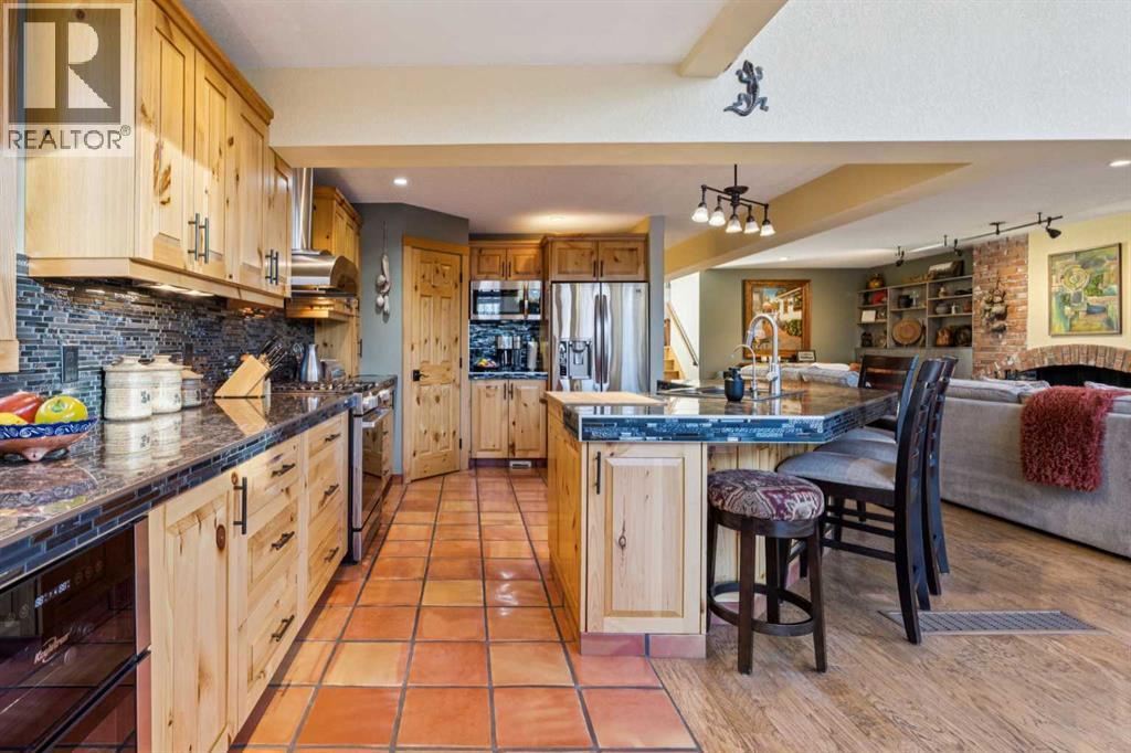 Discover the pinnacle of executive living in this stunning 2,624 sq ft home perched overlooking the serene Varsity Ravine Park. This prime ravine location offers unparalleled tranquility and breathtaking natural views, while being ideally situated on a quiet street in one of Calgary's most sought-after neighborhoods. Step inside to a distinctive floor plan filled with natural light from towering windows adorned with remote-control blinds and custom reflective film—perfect for the west-facing kitchen, dining room, and living room that features a cozy wood-burning fireplace. The heart of the home is the extensively updated kitchen, boasting a large island with a built-in chopping block, gas stove, wine fridge, and newer stainless-steel appliances. Extensive updates include custom built-in cabinetry throughout, enhancing both style and functionality. The upper level welcomes you to a luxurious primary retreat complete with a spacious walk-in closet and a spa-like ensuite featuring a double sink, heated floors, and a no-step walk-in shower with elegant glass block wall. The upper level contains an additional bedroom, and a convenient den overlook the living space below, offering inspiring ravine vistas. The main level provides flexibility with a large recreation room and a bright breakfast nook, ideal for everyday living or entertaining. The lower level features a spacious bedroom with a walk-in closet and built-in storage, plus a 4-piece bathroom. Outdoor living is effortless with a low-maintenance backyard featuring multi-level decks, an outdoor kitchen, and a storage shed backing directly onto the ravine—your private oasis for relaxing and entertaining. The front of the home offers a cozy sitting area and a large driveway leading to an oversized single garage. This exceptional property is perfectly positioned close to the University of Calgary, Market Mall, Foothills Hospital, and just a short walk to the Dalhousie LRT station—combining peaceful ravine seclusion with unbeatable urban convenience. Truly a must see to appreciate the pride of ownership. (31551460)