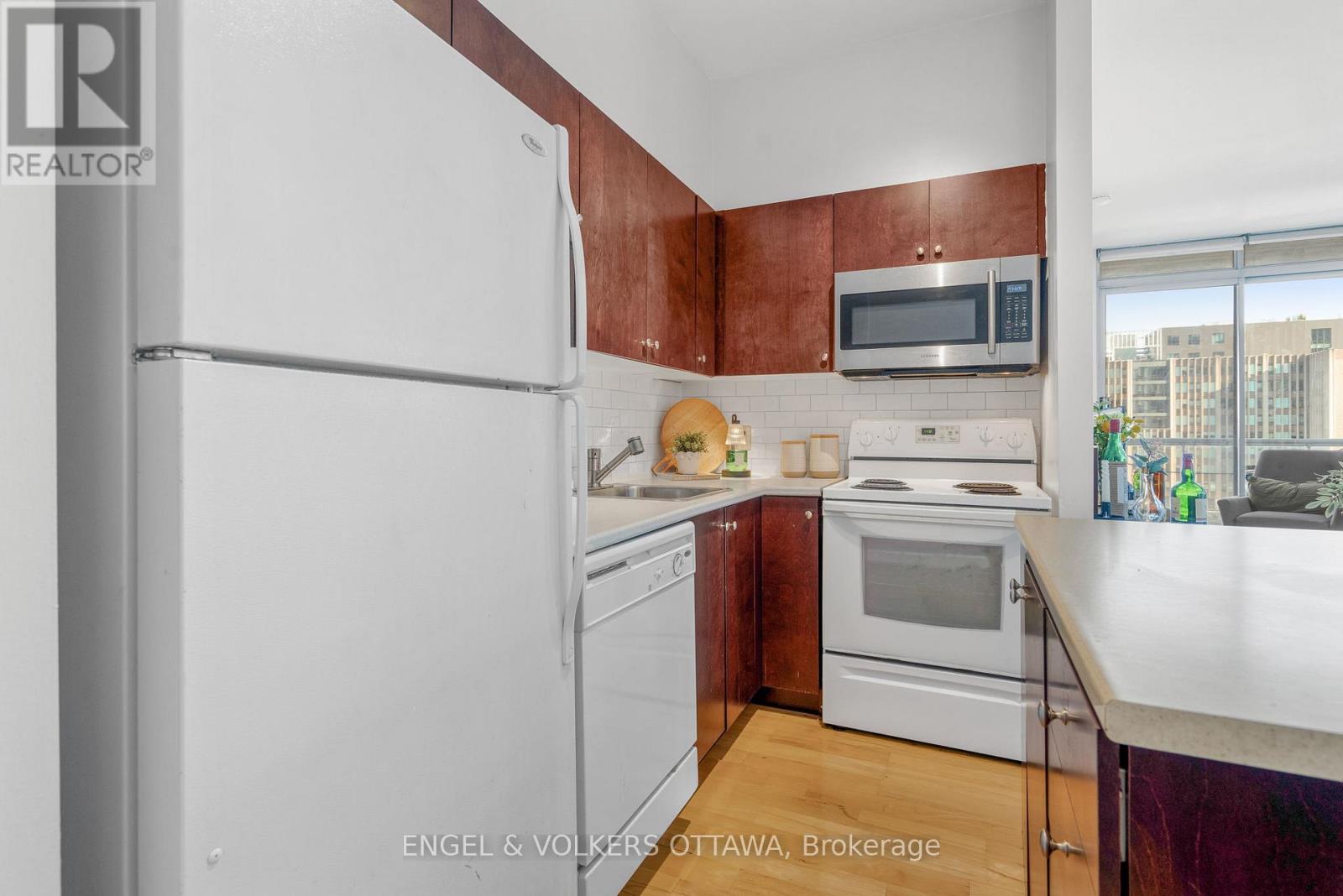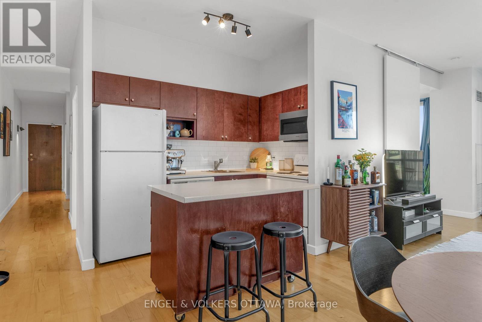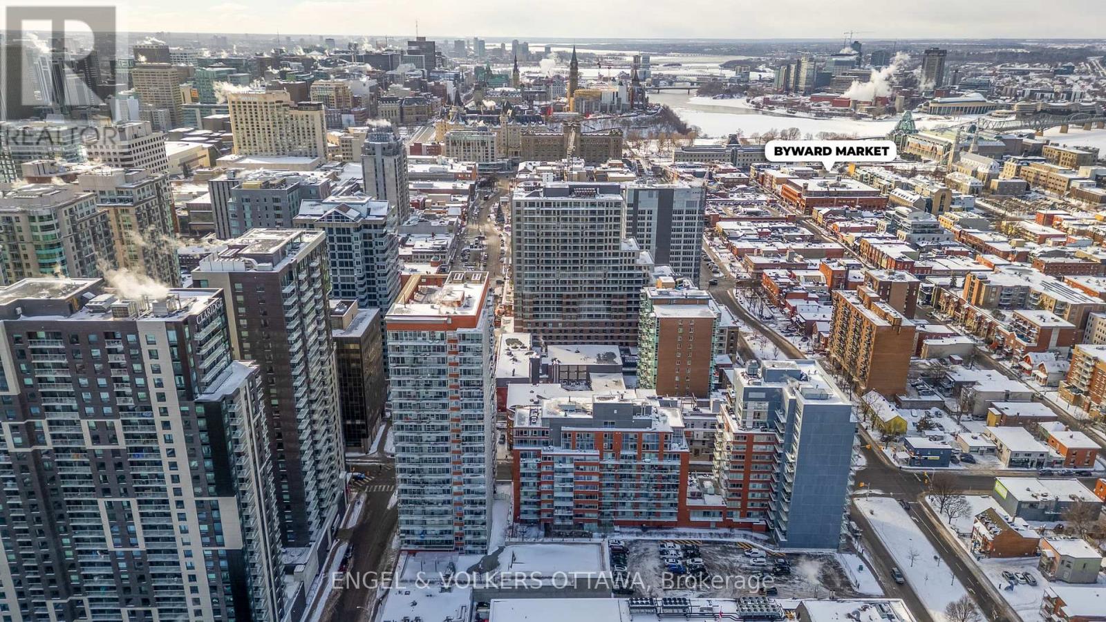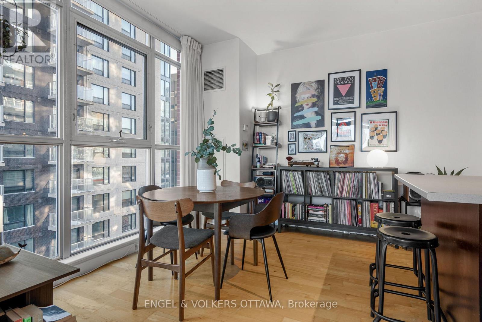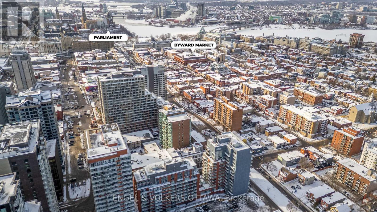 Welcome to East Market Phase III, a sought-after Urban Capital building in the heart of the historic Byward Market. This well-designed Sandy Hill model offers approximately 740 sq. ft. of interior space plus a 107 sq. ft. east-facing balcony, perfectly positioned to capture morning sun and city views. The 1 bedroom + den layout provides excellent flexibility, with a den that works beautifully as a home office, guest space, or a cozy reading nook. Floor-to-ceiling windows flood the main living area with natural light, complemented by custom drapery and blinds. The kitchen is both functional and stylish, featuring solid wood cabinetry and a central island-ideal for casual meals or entertaining. Step outside to a generously sized east-facing balcony, perfect for morning coffee or unwinding after work. The primary bedroom features built-in storage thoughtfully integrated into the closet, maximizing space and functionality. The bathroom offers cheater access to the bedroom, enhancing everyday convenience. Underground parking conveniently located across from the elevator and a storage locker included. Condo fees include amenities, concierge, hydro, heat, and water - just pay for internet. This secure building offers desirable amenities including a gym, party room, and outdoor terrace. Located steps from restaurants, shopping, groceries, and entertainment, with the Rideau Centre LRT station, University of Ottawa, Parliament, and easy access to Highway 417 and Autoroute 5 nearby. With the City of Ottawa pursuing National Historic Site designation for the Byward Market ahead of its 200th anniversary of Bytown in 2027, this neighbourhood continues to offer strong long-term appeal. Whether you're a first-time buyer, government or downtown professional, investor, or downsizer seeking a walkable, lock-and-leave lifestyle, this condo delivers exceptional value in one of Ottawa's most vibrant communities. (41993522)