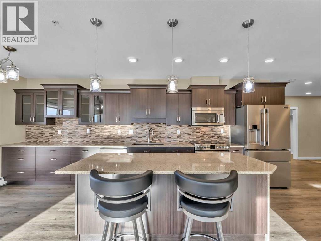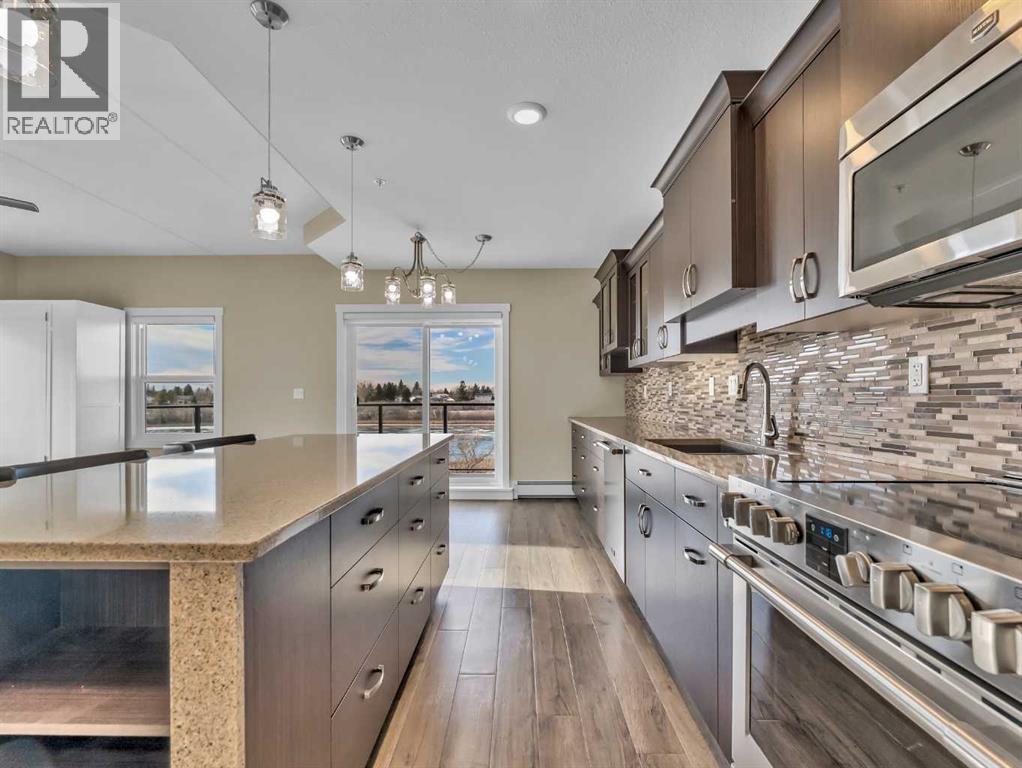 Enjoy refined condo living in this 3rd-floor corner unit located in a quiet adult-oriented building, offering incredible lake views and abundant natural light from multiple exposures. This well-designed home features a spacious Primary Suite with ensuite, a 2nd bedroom with a built in Murphy Bed and an additional full bathroom, ideal for comfort and privacy. The beautiful kitchen is a standout, showcasing granite countertops, custom upgraded cabinetry, and ample workspace, perfect for both everyday living and entertaining. The thoughtful layout flows seamlessly into the living and dining areas, where large windows and glass doors frame the stunning lake scenery. Step outside to the wraparound deck, where you’ll find two exterior storage units, providing ultimate convenience and extra space for seasonal, outdoor or workshop items. Additional highlights include in-suite laundry, one secure indoor parking stall, and an additional outdoor parking spot, a valuable combination! Building amenities enhance the lifestyle, featuring an inviting entry-level common area ideal for visits and enjoying a coffee, along with an elevator for easy access to and from the units. All of this is complimented by the peaceful atmosphere of adult living, making this bright corner unit an exceptional opportunity in a sought-after condo community. (31555847)
