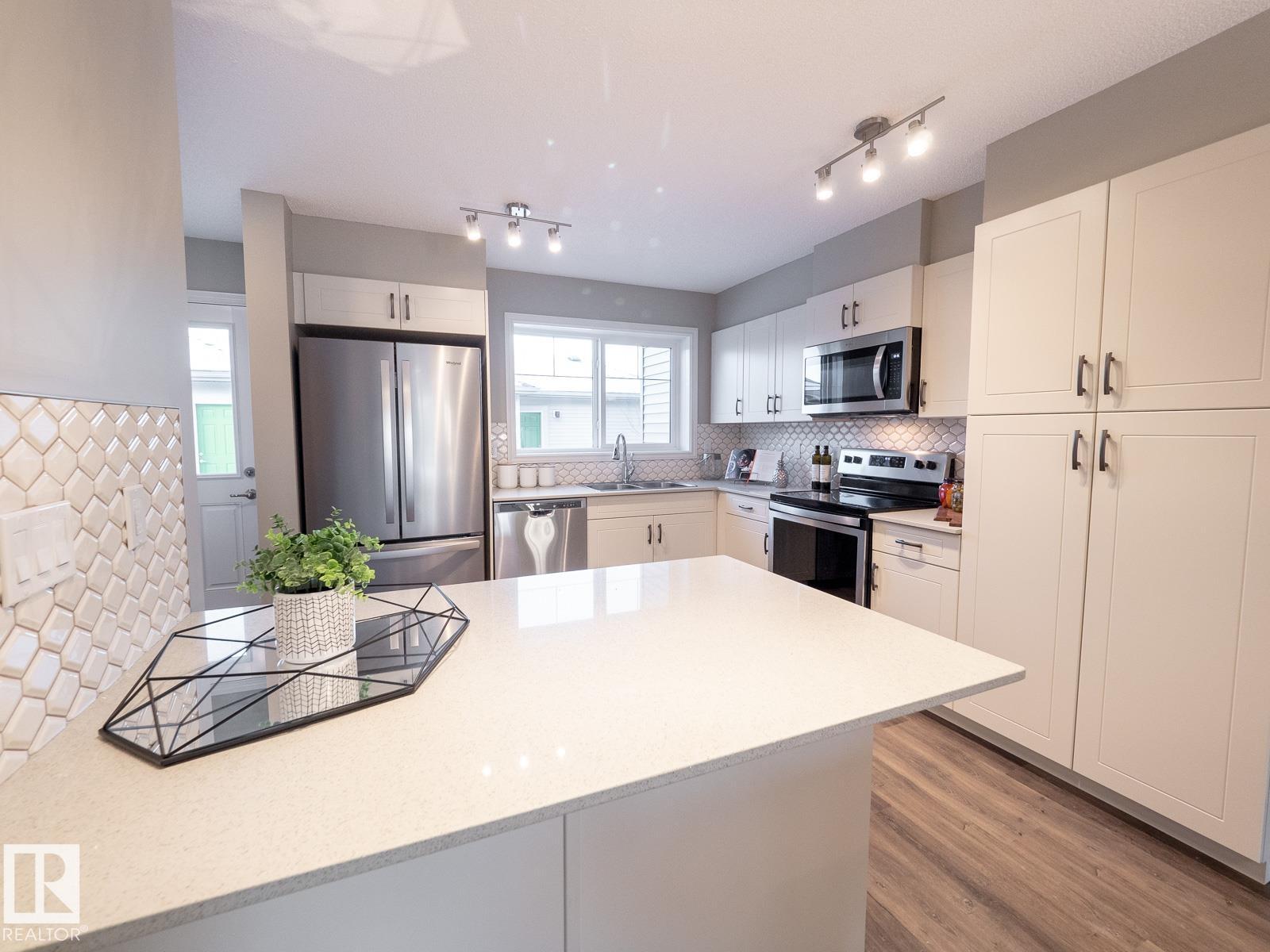This townhome built by Coventry Homes blends smart design with modern style—and comes with no condo fees. The kitchen features gorgeous cabinetry, quartz countertops, stainless steel appliances, and a striking tile backsplash, all flowing into the dining and living areas for a cohesive, open-concept feel. A convenient half bath completes the main level. Upstairs, the spacious primary bedroom offers a walk-in closet and 4-piece ensuite, while two additional bedrooms and a full bath complete the upper floor. The unfinished basement with bathroom rough-in is ready for your personal touch. Outside, enjoy a fully landscaped yard and double detached garage. Plus, your home is backed by the Alberta New Home Warranty Program. *Home is under construction, photos not of actual home, some finishings may vary* (33746688)