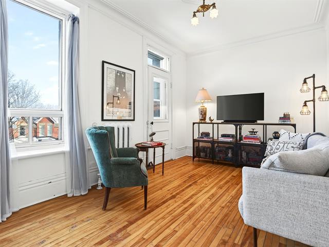 Located on the top floor of a triplex, this elegant apartment stands out for its abundant natural light, architectural character, and generous proportions. The living area features a spacious living room and dining room, complemented by a family room / TV area opening onto a balcony. The property offers two bedrooms, a home office, a bathroom, a bright and functional kitchen, and an outdoor parking space. Ideally situated in the heart of Victoria Village, just steps from Westmount Park, this sought-after address combines elegance, tranquility, and an exceptional quality of life. (42739610)