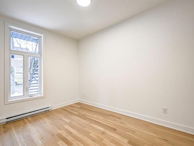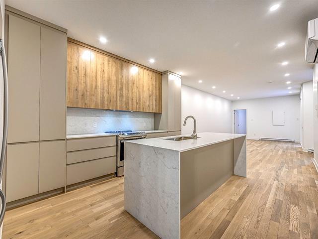 Plateau Mont-Royal: Stunning fully renovated ground floor unit in a heritage grey stone triplex. 4 bedrooms, 2 luxurious bathrooms, white oak floors, 9ft ceilings, quartz counters, wall-mounted heat pump. Private backyard + large exclusive terrace (direct access, no balcony). All appliances included. Superior soundproofing. Steps from Lafontaine, Baldwin, Fullum (pool), Rachel and Mont-Royal parks. Iconic restaurants, fine grocers, schools, Sablon centre (indoor pool/gym) minutes away. Easy vignette parking. Plateau gem for families! (40106365)