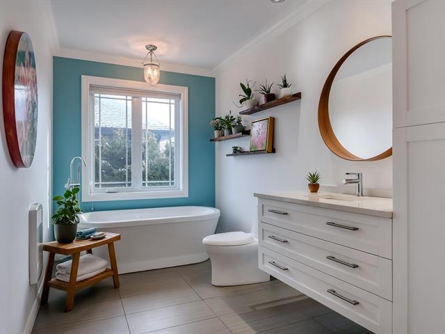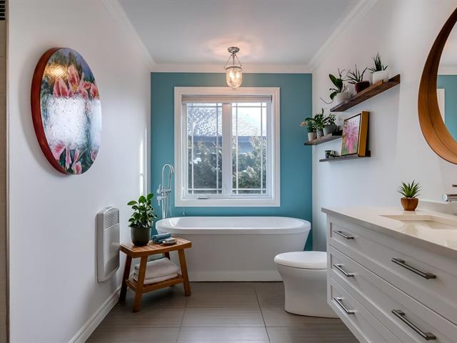 Superbe bungalow avec garage situé sur un grand terrain de 7 750 pi², offrant une cour spectaculaire avec piscine creusée munie d'une chute, pergola et cuisine extérieure -- un véritable espace de vie estival! À l'intérieur, vous découvrirez une propriété aux proportions généreuses, avec de hauts plafonds et une luminosité exceptionnelle grâce à une fenestration abondante qui laisse entrer le soleil toute la journée. La cuisine, entièrement rénovée en 2020, propose des comptoirs de quartz, un élégant dosseret et un design moderne. Salle de bain également rénovée en 2020 avec bain autoportant et superbe vanité. Le sous-sol aménagé avec entrée (46735790)