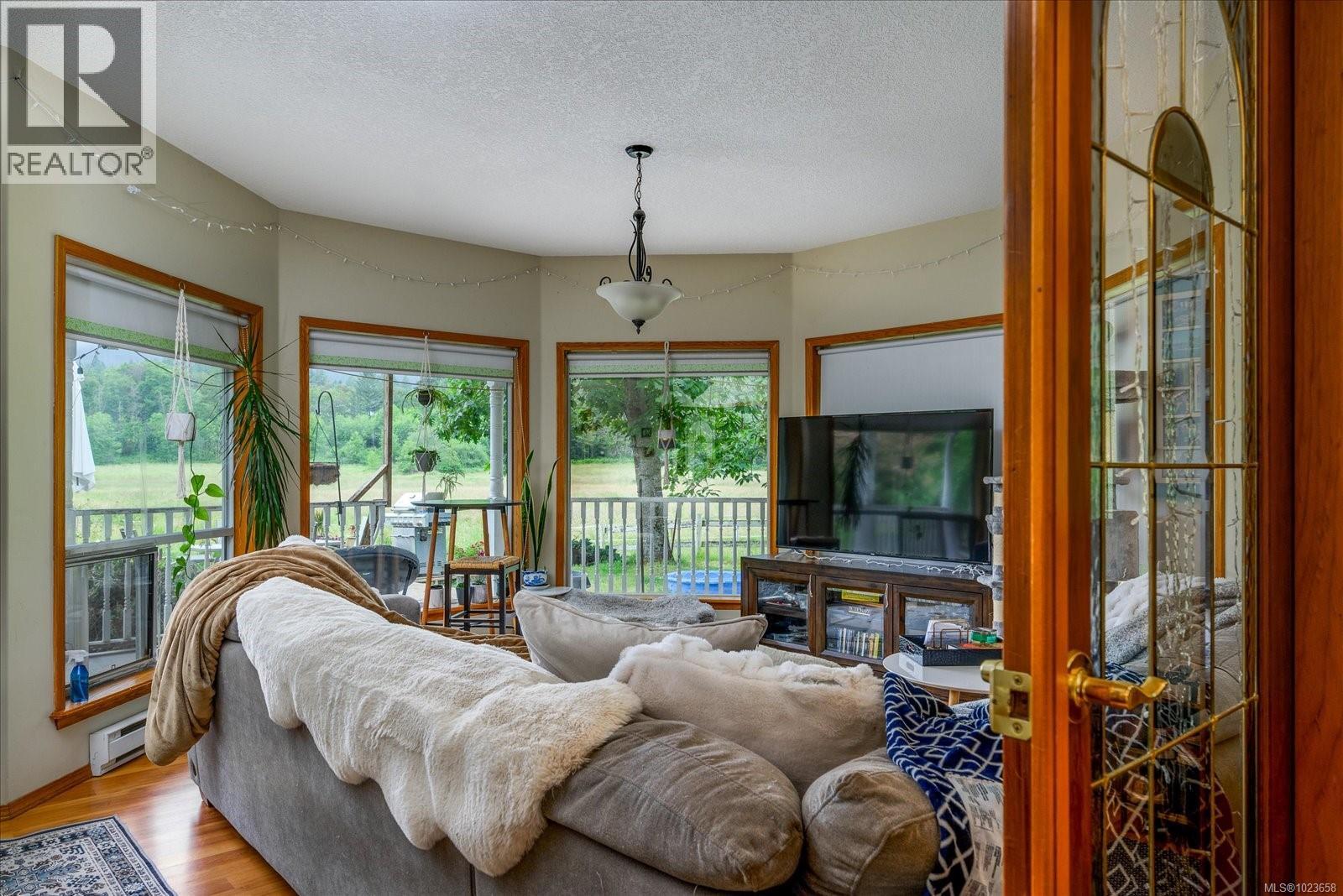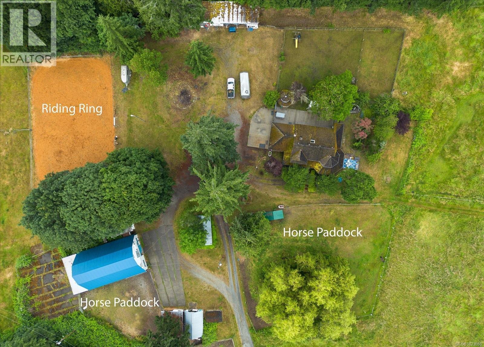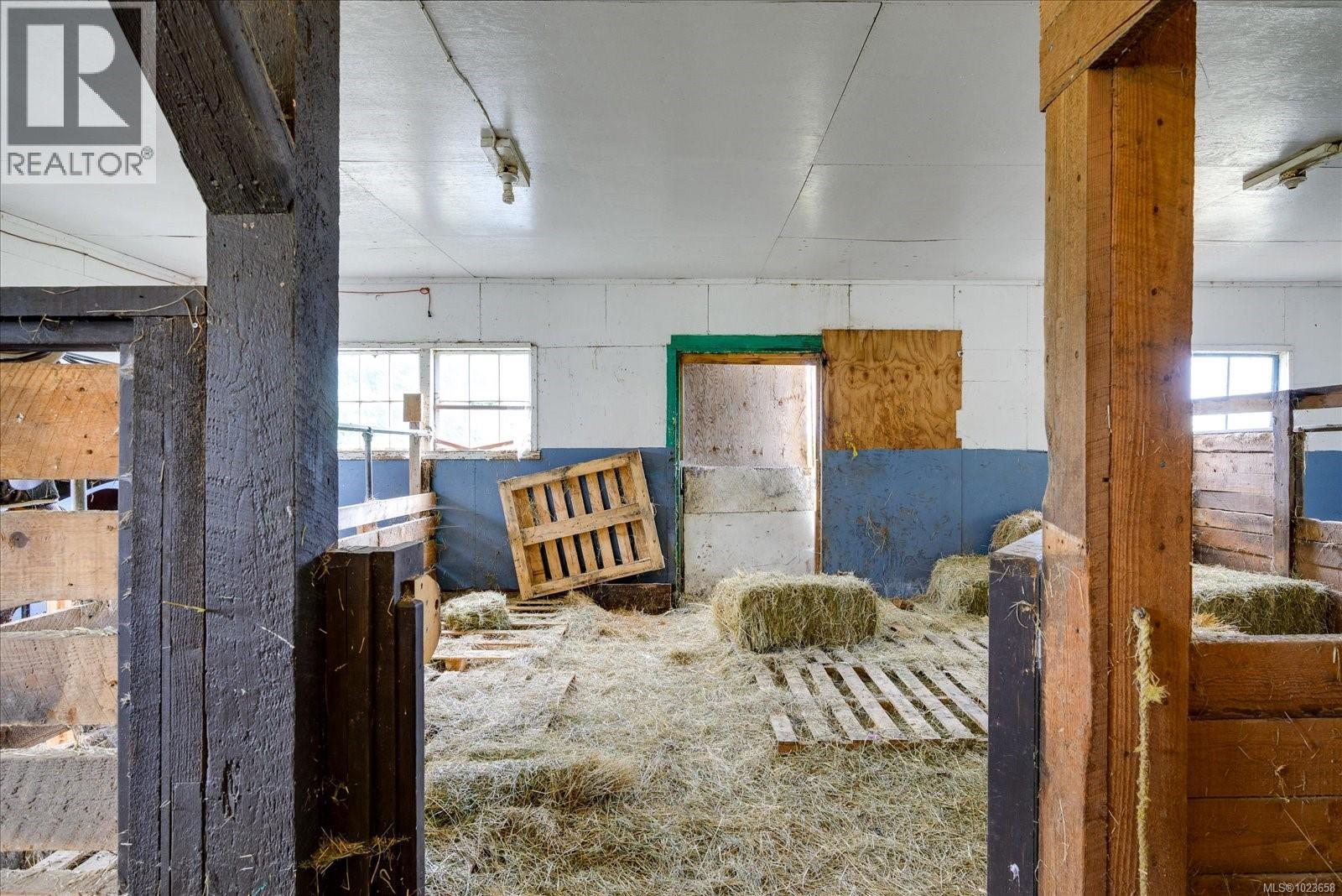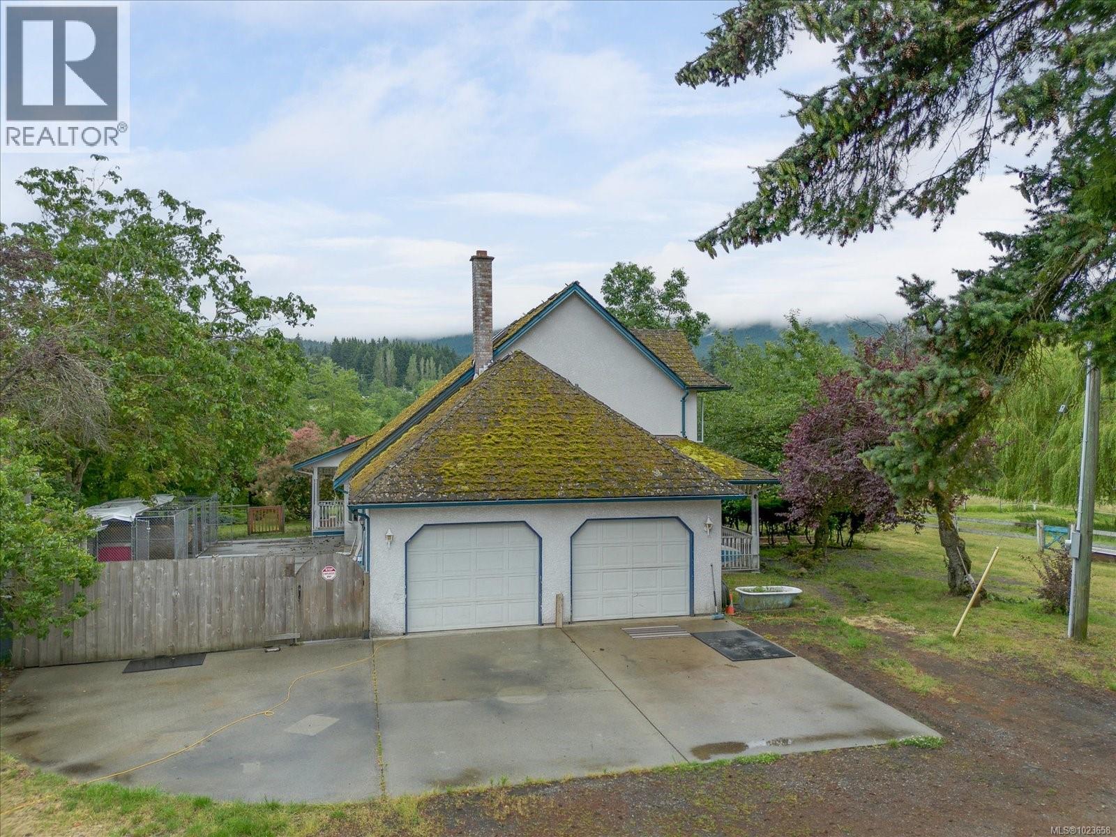 Idyllic 34 acre property in the desirable Jingle Pot area of Nanaimo! At the end of the winding driveway, across cleared fields and a small stream is a 3 bed plus den, 2 bath farmhouse with a wrap around porch, large barn, paddocks, implement shed, outbuilding and riding ring. The homestead is surrounded by mature trees providing both privacy and shade. Every room in the house has beautiful views, especially the picture windows in living room and primary bedroom that look out across the fields over to Mount Benson – the sunset is spectacular! As ALR land there are plenty of options for self sustainable living with hayfields and gardens, plus the barn and outbuildings serve a variety of businesses and hobbies. Come enjoy quiet and solitude just minutes from town. (30301205)