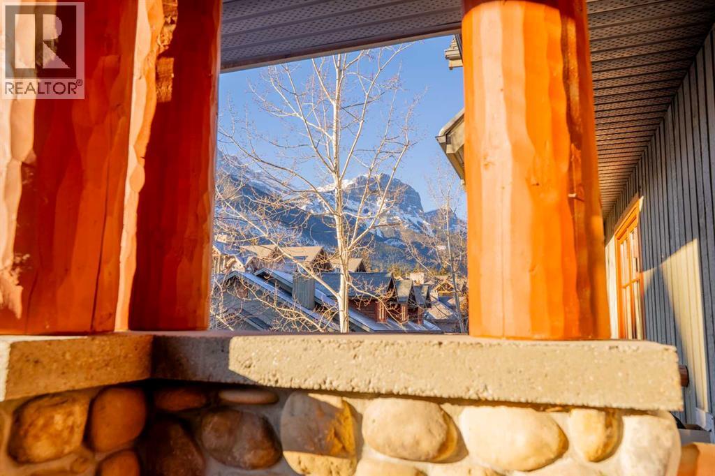 A bright, two-level top-floor home with mountain views, a functional layout, and excellent on-site amenities. This south-facing 2-bedroom plus den residence spans 1364 square feet on two levels, offering strong natural light throughout the day and mountain views from every window. The layout provides clear separation between living and sleeping areas, giving the home a townhouse-style feel that’s rarely found in condominium living. The main level is dedicated to daily living and includes a spacious kitchen with breakfast bar, a defined dining area, and a comfortable living room with a river stone gas fireplace, and access to the balcony. A dedicated laundry room and a large den on this level add practical flexibility for a home office, guest space, or additional storage.The upper level is reserved for the sleeping quarters. The primary bedroom is notably large and includes a full ensuite bathroom, creating a private retreat. A second well-sized bedroom, an additional full bathroom, generous closet space, and a secondary entrance complete this level, enhancing both functionality and convenience.Owners enjoy access to a well-appointed amenity lodge featuring a fully equipped fitness centre, steam room, and multiple hot tubs—valuable amenities that support an active lifestyle and reduce ongoing costs.A well-maintained, two-level unit in a solid condominium complex, offering space, privacy, and long-term livability in an established Canmore location. (31558724)