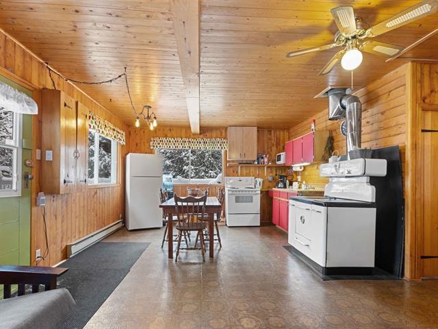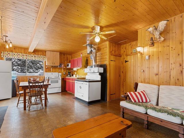 Rare sur le marché! Chalet 3 saisons+ (facilement convertible en 4 saisons) offrant 2 chambres. Cet havre de paix niché sur un vaste terrain boisé de 57 779 pc offre une belle intimité grâce à son absence de voisin et son retrait de la route. Vivez le confort d'un poêle à combustion lente au salon et le plaisir d'antan d'une cuisinière au bois. Profitez de la nature avec son coin feu et son SPA. Une perle rare à ne pas manquer! Actuellement utilisé en location courte durée (projet à valider auprès des autorités compétentes). Vendu tout meublé, prêt à vous accueillir! Visite sur pré-qualification hypothécaire seulement. À voir absolument! GST/QST must be added to the asking price (39375373)