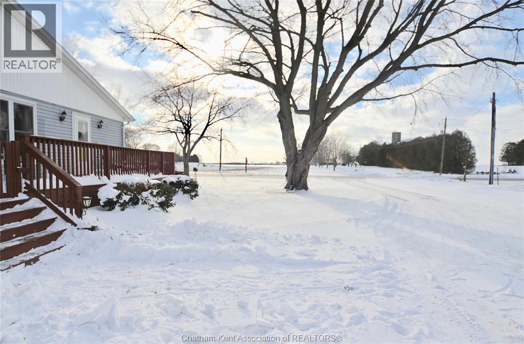 This 3.58 acre beauty on the outskirts of the quiet village of Highgate is full of pleasant surprises. Seeing the home from the road, you would have no idea about the back field, currently rented as farmland, a wide open space for your country property dreams to come true. There's the double car insulated garage/workshop, multiple sheds for more storage, a fenced area off the fully gated wraparound deck that's perfect for kids and/or dogs, and last, but certainly not least, the 3 bedroom, 2 bathroom home that's welcoming you in! Well-kept and updated over the years as loving owners saw fit, the vaulted ceilings, large windows and skylights give this place airy brightness. The open concept has a lovely feel and the oak kitchen with large island breakfast bar is attractive, with built in appliances and lots of cabinet space. Big enough for families and not too much for retirees or starters, it’s comfy one level living with 3 bedrooms, but the huge back master with patio doors off to the deck is also an ideal family room if only 2 are needed. Enjoy the convenience of a paved road location and natural gas, plus the ideal location only a minute to 401 access, 25 minutes to Chatham and 55 minutes to London. Enjoy deep well water too, with this property supplying 3 other properties to the north. This is the perfect blend of country living, but with affordability and convenience included! (55279630)