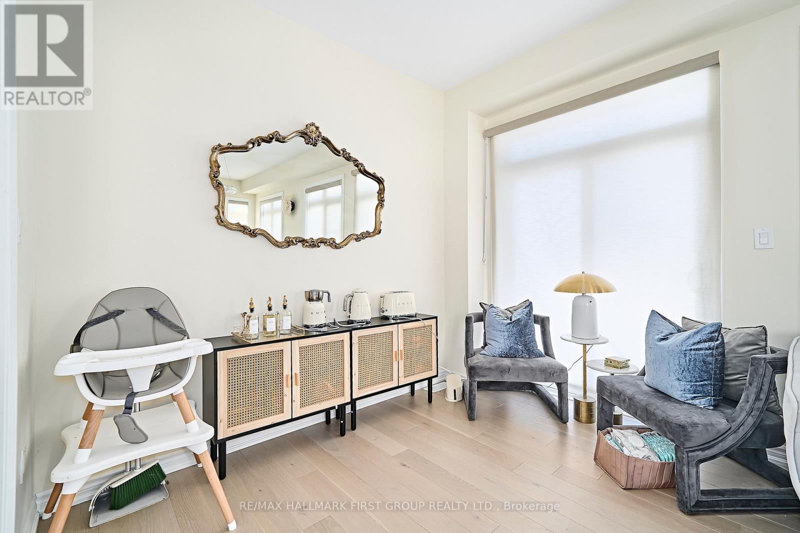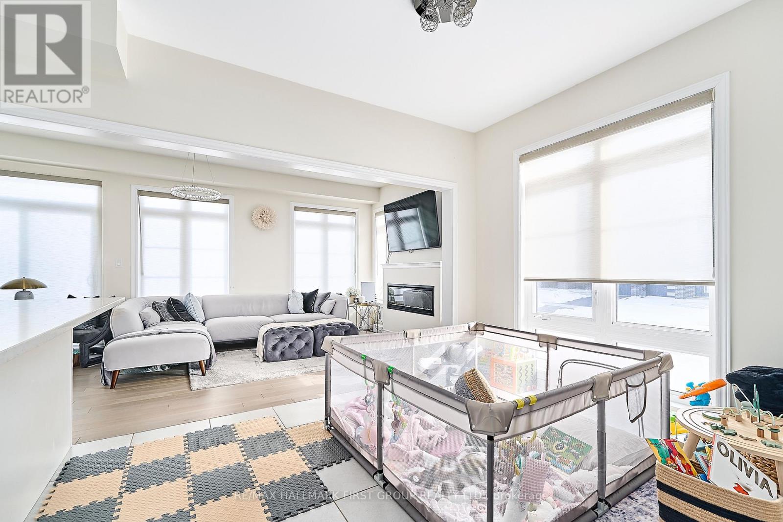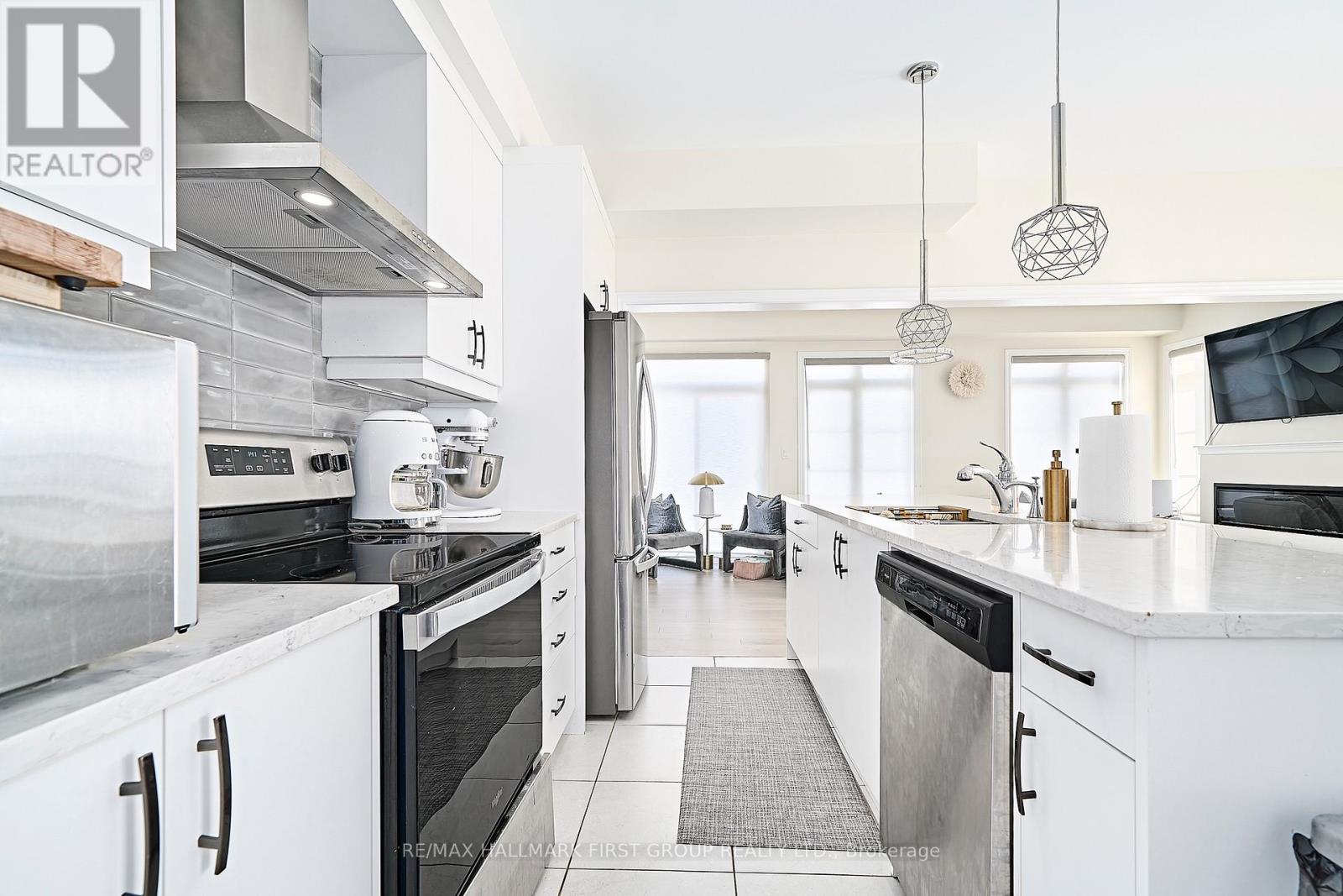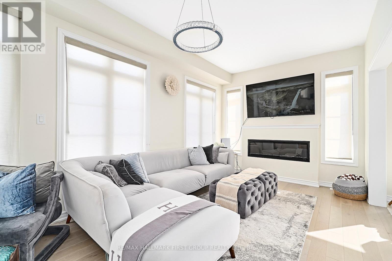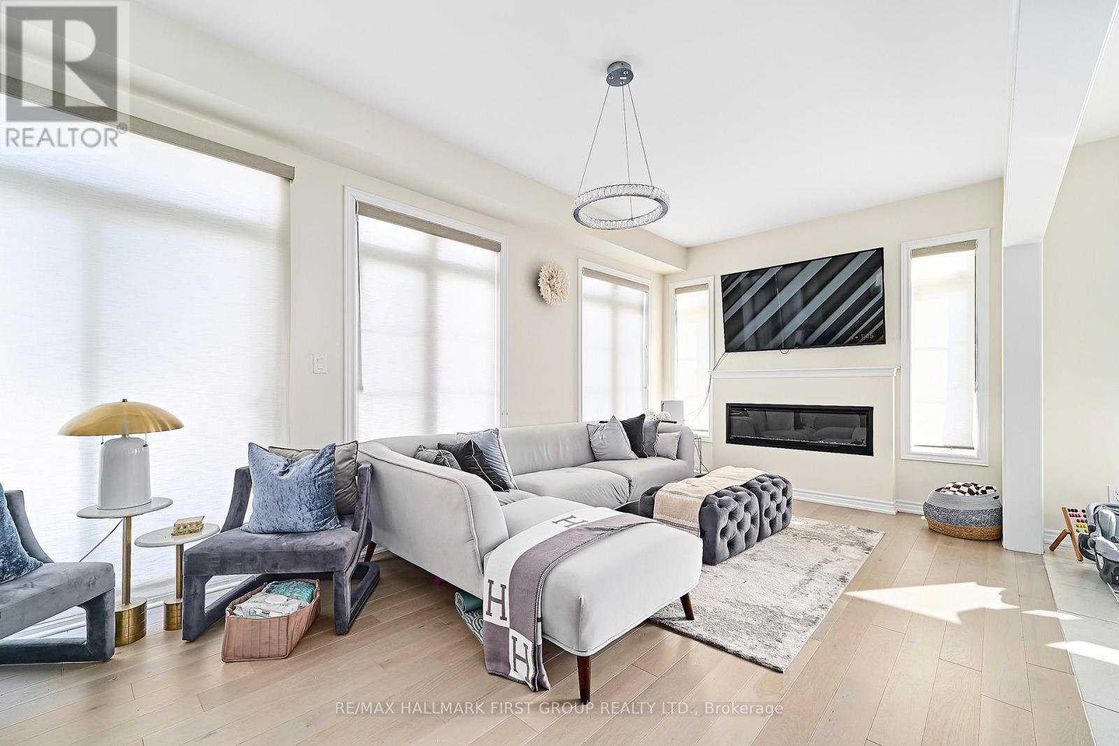 Stunning 4-bedroom end-unit townhouse offering just over 2,100 sq ft of thoughtfully designed living space, filled with an abundance of natural light from expansive floor-to-ceiling windows throughout the home. The main floor features beautiful light hardwood flooring, 9-foot ceilings, a convenient 2-piece bathroom, and a private office with wraparound floor-to-ceiling windows, ideal for working from home. The modern kitchen is equipped with stainless steel appliances, quartz countertops, and a breakfast bar, seamlessly flowing into the family room with an inviting electric fireplace and walkout to the backyard. The upper level offers a spacious primary bedroom with a walk-in closet and a luxurious 4-piece ensuite featuring a soaker tub and glass walk-in shower, along with three additional well-sized bedrooms serviced by a full 4-piece bathroom. A separate upper-level laundry room with an additional sink adds everyday convenience. Direct access from the garage into the home and an unfinished basement suitable for use as a recreation room complete the space. Ideally located with easy access to schools, shopping, and major 400-series highways, this home is perfect for families seeking comfort, style, and convenience. (41997435)