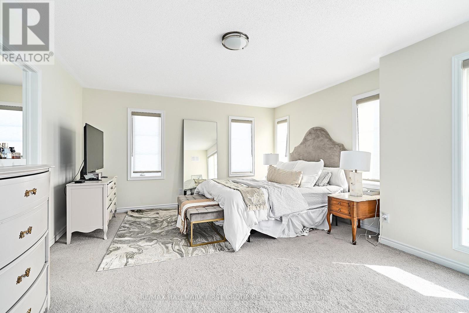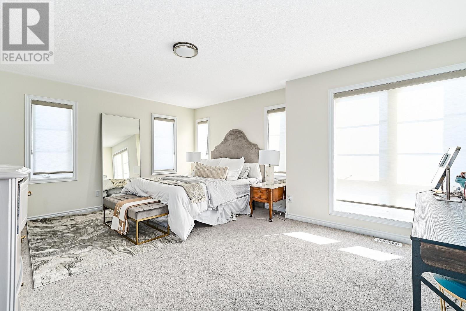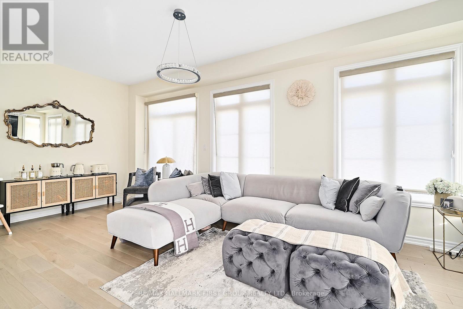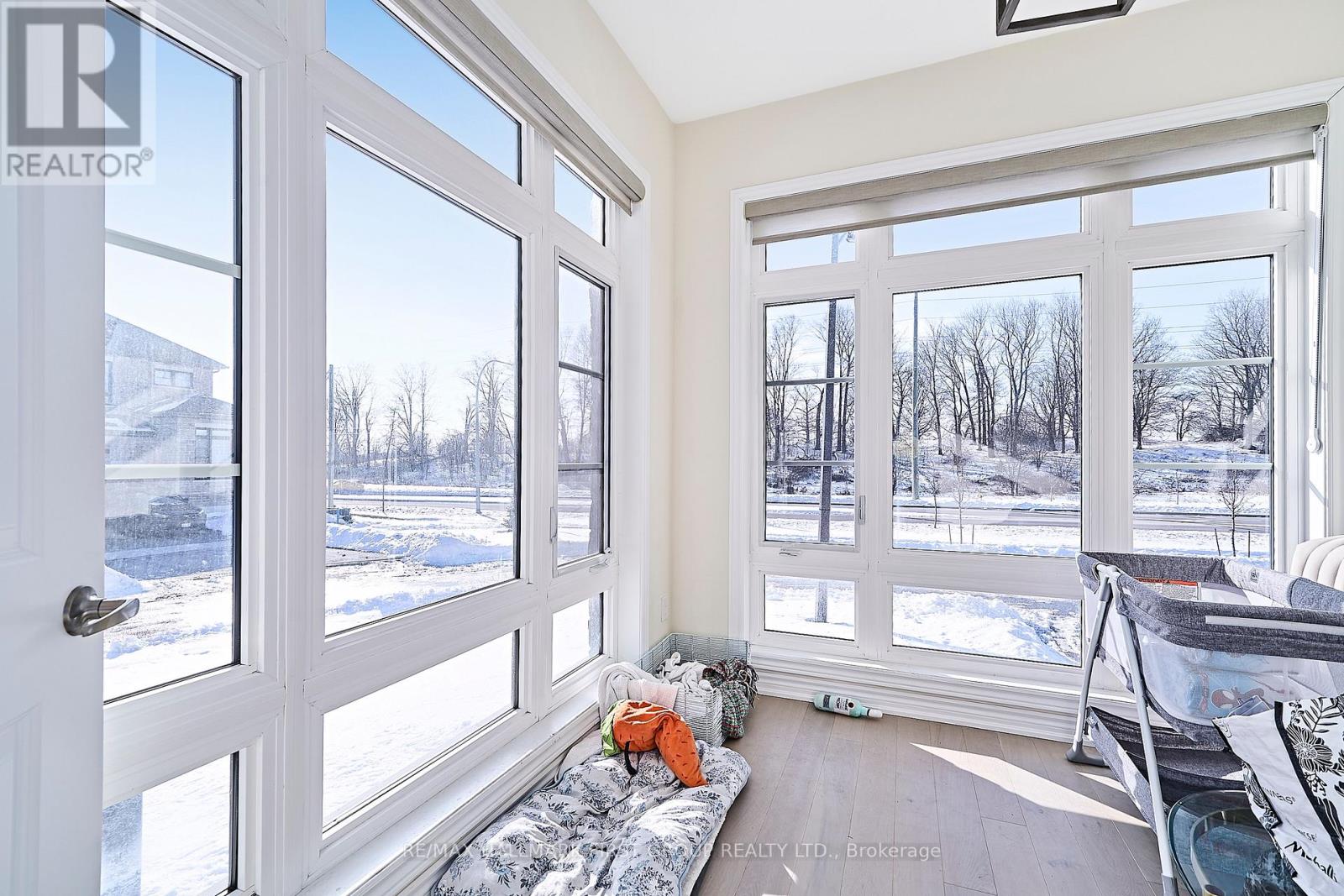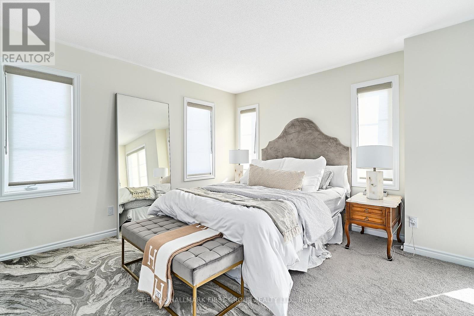 Stunning 4-bedroom end-unit townhouse offering just over 2,100 sq ft of thoughtfully designed living space, filled with an abundance of natural light from expansive floor-to-ceiling windows throughout the home. The main floor features beautiful light hardwood flooring, 9-foot ceilings, a convenient 2-piece bathroom, and a private office with wraparound floor-to-ceiling windows, ideal for working from home. The modern kitchen is equipped with stainless steel appliances, quartz countertops, and a breakfast bar, seamlessly flowing into the family room with an inviting electric fireplace and walkout to the backyard. The upper level offers a spacious primary bedroom with a walk-in closet and a luxurious 4-piece ensuite featuring a soaker tub and glass walk-in shower, along with three additional well-sized bedrooms serviced by a full 4-piece bathroom. A separate upper-level laundry room with an additional sink adds everyday convenience. Direct access from the garage into the home and an unfinished basement suitable for use as a recreation room complete the space. Ideally located with easy access to schools, shopping, and major 400-series highways, this home is perfect for families seeking comfort, style, and convenience. (41997435)