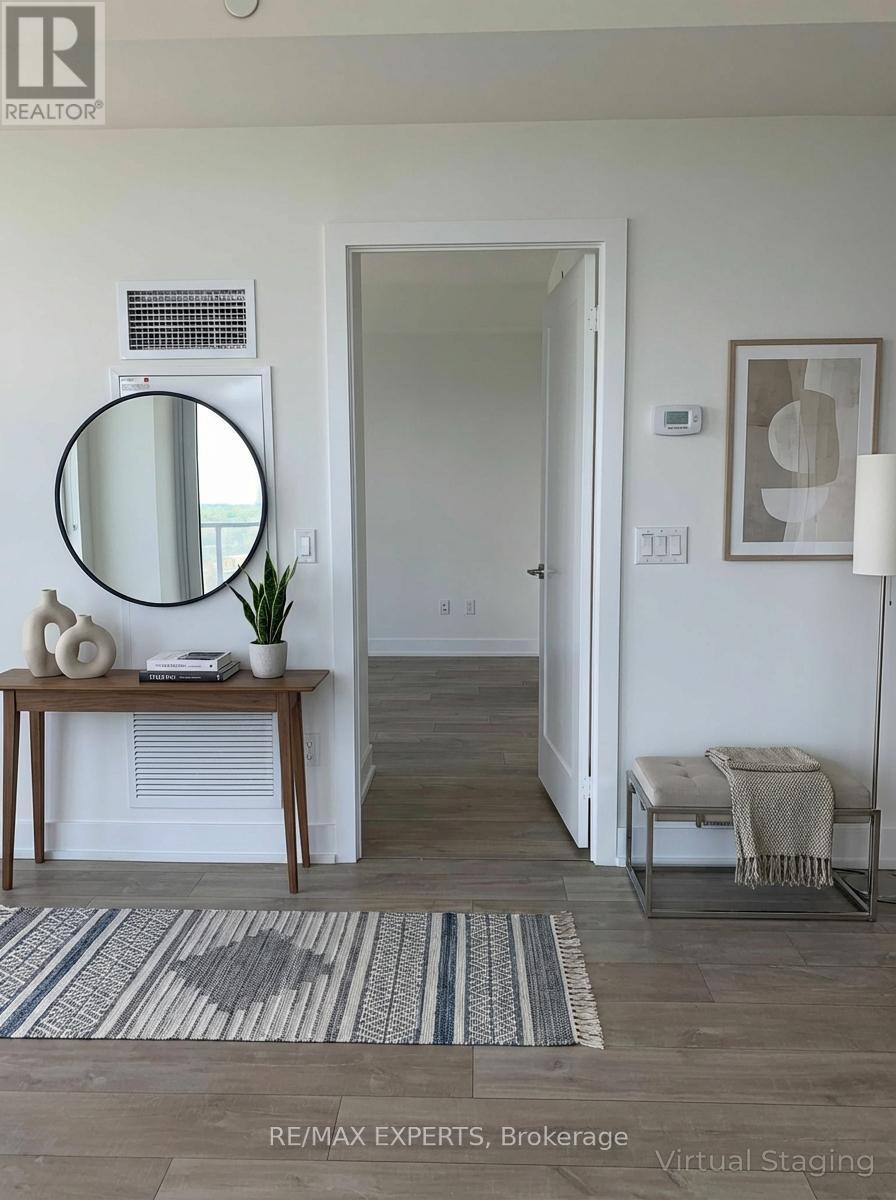 Welcome to this rare Tridel-built Islington Terrace corner suite. the largest floor plan in the building at approx. 809 sq. ft. Enjoy unobstructed south-east views of the CN Tower and Lake Ontario, plus sunlight all day through expansive floor to ceiling windows. This 2 bed + den, 2 bath unit features an excellent layout, modern kitchen with granite counters & stainless steel appliances, 9-ft ceilings, and a spacious balcony. The versatile media room/den is perfect for a WFH office. Immaculately maintained, this unit includes two premium P1 parking spots. One oversized EV-ready space with charger (rare!) and space for a motorcycle, plus two large side-by-side lockers. Great investment potential with no rent control in the building. The additional parking spot can be rented for added income. Internet included in condo fees. Direct access to TTC's Islington Station downstairs, with major upgrades underway (new bus terminal, elevators, and entrances by 2026) making this a true commuter's paradise. Experience Tridel's renowned quality and full suite of amenities in one of Etobicoke's most connected communities. Photos virtually staged* (41997396)