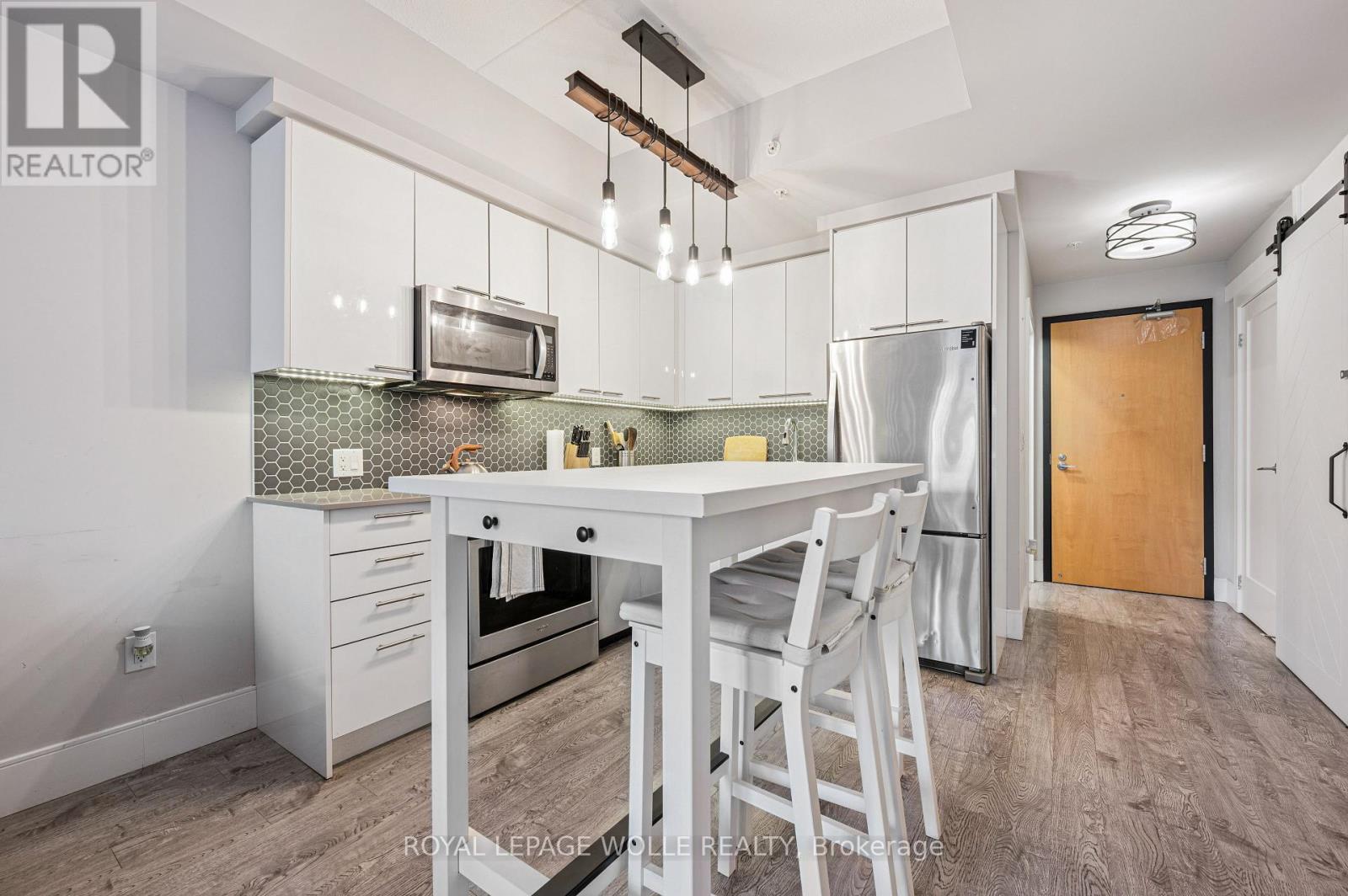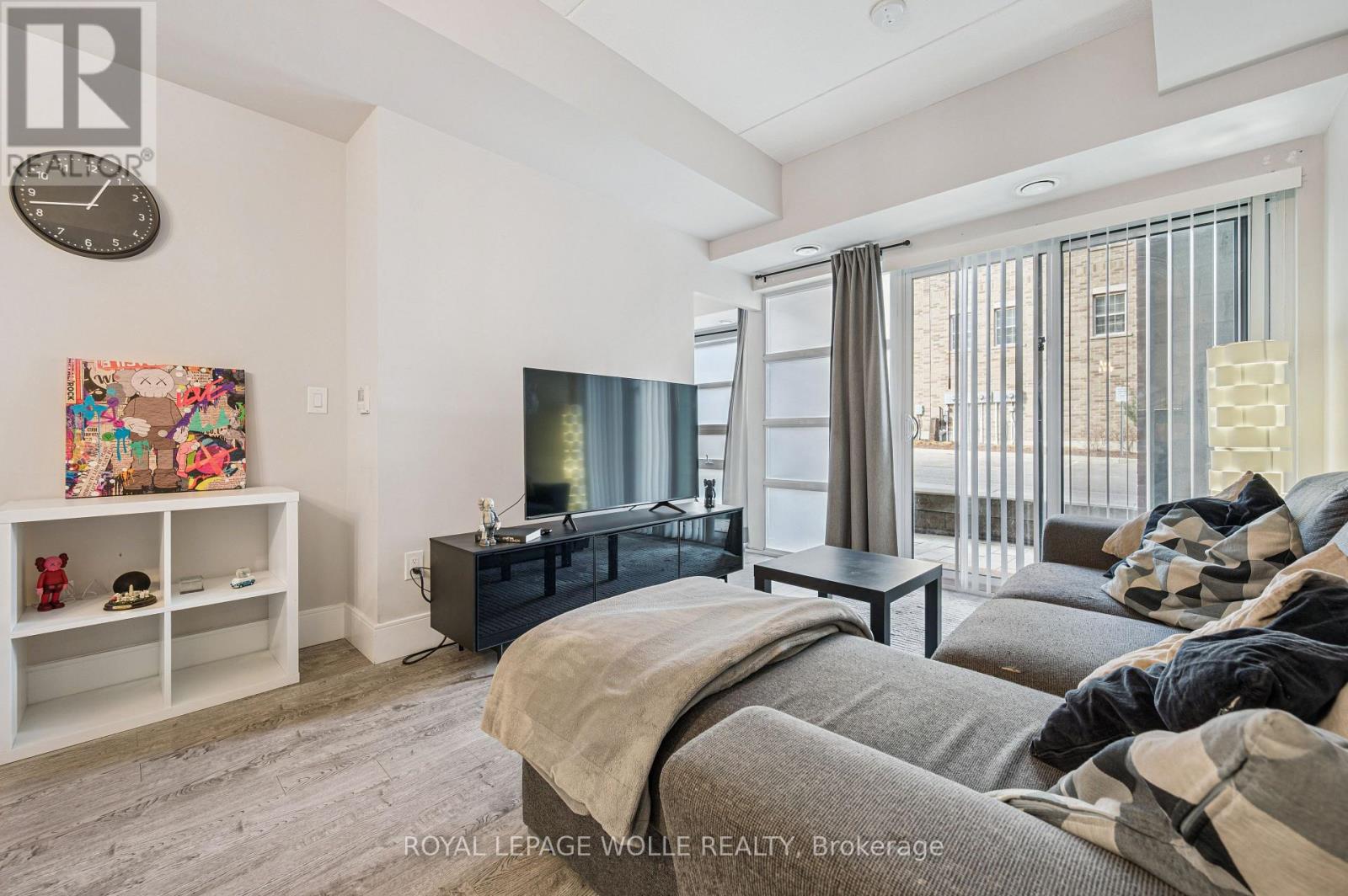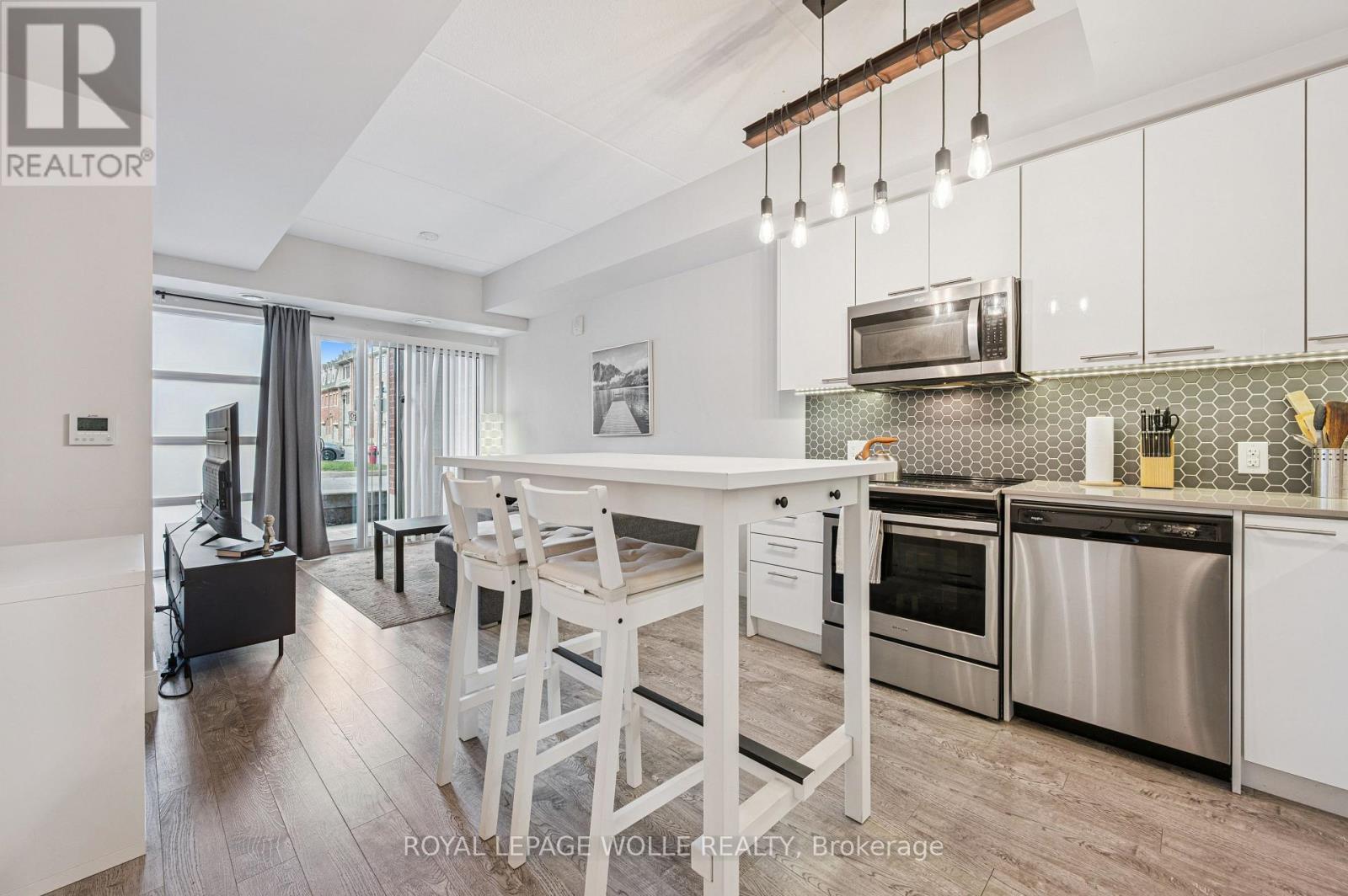 Welcome to 15 Prince Albert Blvd Unit 104-a stylish and modern 1 Bedroom + Den condo offering EXCEPTIONAL COMFORT, ANDCONVENIENCE. Located on the main floor, this unit provides easy access along with an open concept, CONTEMPORARY LIVING SPACE you'll lovecoming home to. Inside, enjoy 2 full bathrooms, including a 3-piece ensuite with a sleek glass shower enclosure, plus a separate 4-piece secondbathroom-PERFECT FOR GUESTS OR A ROOMMATE. The spacious den features a barn door enclosure and a full closet, making it ideal as anoffice or guest space. The MODERN KITCHEN IS DESIGNED TO IMPRESS, featuring white cabinetry, a grey tile backsplash, quartz countertops,and stainless appliances. In-suite laundry adds everyday convenience. ENJOY YOUR OWN PRIVATE PATIO, PERFECT FOR RELAXING. The buildingoffers a FITNESS CENTRE AND PARTY ROOM RIGHT OUTSIDE YOUR DOOR on the main floor. With GEOTHERMAL HEATING AND COOLING, eachunit is separately metered for ENERGY-EFFICIENT, COST-EFFECTIVE LIVING. 1 underground parking spot and a storage locker are included.Enjoy a PRIME LOCATION steps from parks, the Google office, UW's School of Pharmacy, and the lively amenities of Downtown Kitchener and ashort commute to Uptown Waterloo along with the VIA Rail train station nearby for easy commuting. Move-in ready and beautifully appointed,Unit 104 is the perfect blend of style, function, and location. Don't miss your chance to make it yours! (41998482)