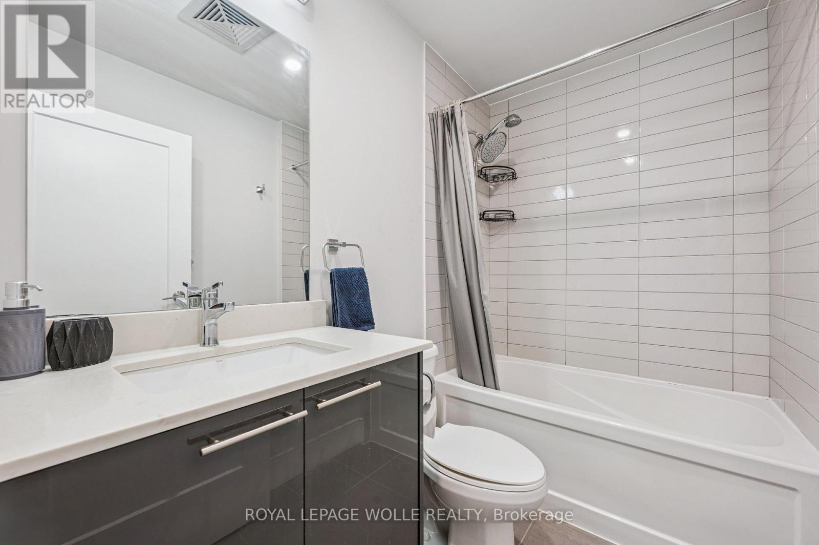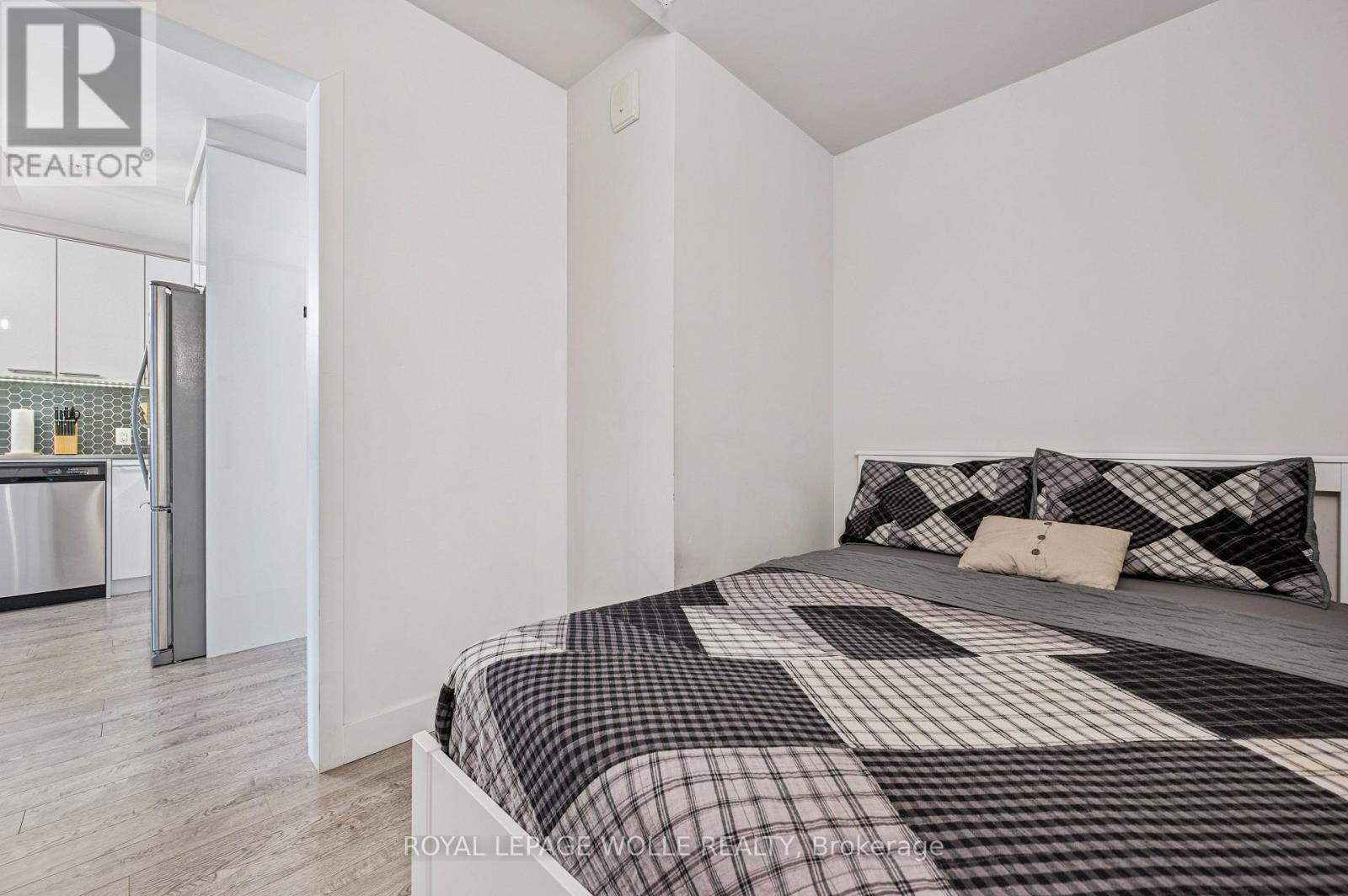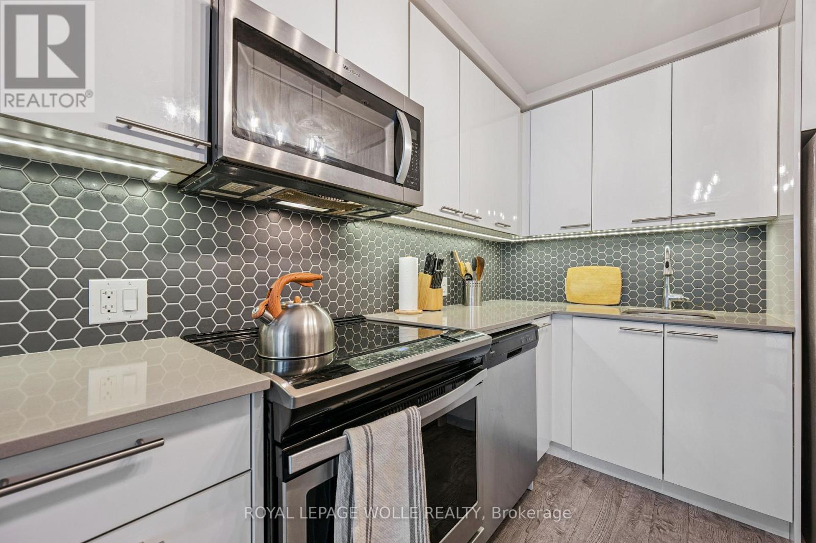 Welcome to 15 Prince Albert Blvd Unit 104-a stylish and modern 1 Bedroom + Den condo offering EXCEPTIONAL COMFORT, ANDCONVENIENCE. Located on the main floor, this unit provides easy access along with an open concept, CONTEMPORARY LIVING SPACE you'll lovecoming home to. Inside, enjoy 2 full bathrooms, including a 3-piece ensuite with a sleek glass shower enclosure, plus a separate 4-piece secondbathroom-PERFECT FOR GUESTS OR A ROOMMATE. The spacious den features a barn door enclosure and a full closet, making it ideal as anoffice or guest space. The MODERN KITCHEN IS DESIGNED TO IMPRESS, featuring white cabinetry, a grey tile backsplash, quartz countertops,and stainless appliances. In-suite laundry adds everyday convenience. ENJOY YOUR OWN PRIVATE PATIO, PERFECT FOR RELAXING. The buildingoffers a FITNESS CENTRE AND PARTY ROOM RIGHT OUTSIDE YOUR DOOR on the main floor. With GEOTHERMAL HEATING AND COOLING, eachunit is separately metered for ENERGY-EFFICIENT, COST-EFFECTIVE LIVING. 1 underground parking spot and a storage locker are included.Enjoy a PRIME LOCATION steps from parks, the Google office, UW's School of Pharmacy, and the lively amenities of Downtown Kitchener and ashort commute to Uptown Waterloo along with the VIA Rail train station nearby for easy commuting. Move-in ready and beautifully appointed,Unit 104 is the perfect blend of style, function, and location. Don't miss your chance to make it yours! (41998482)