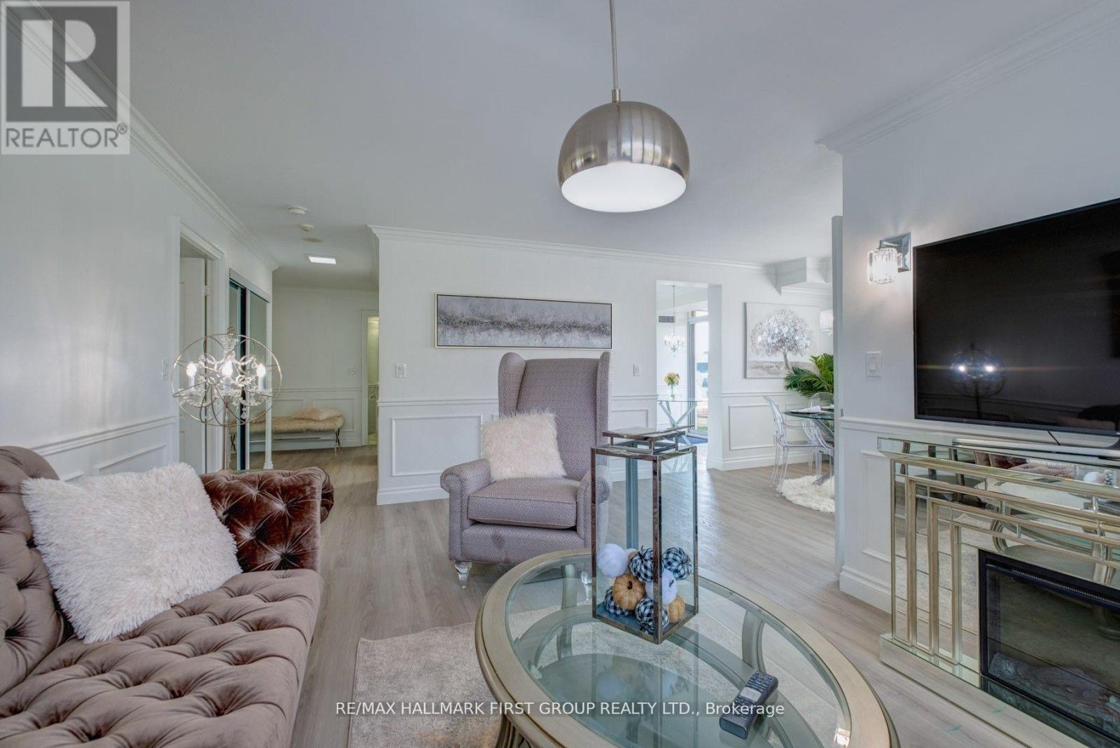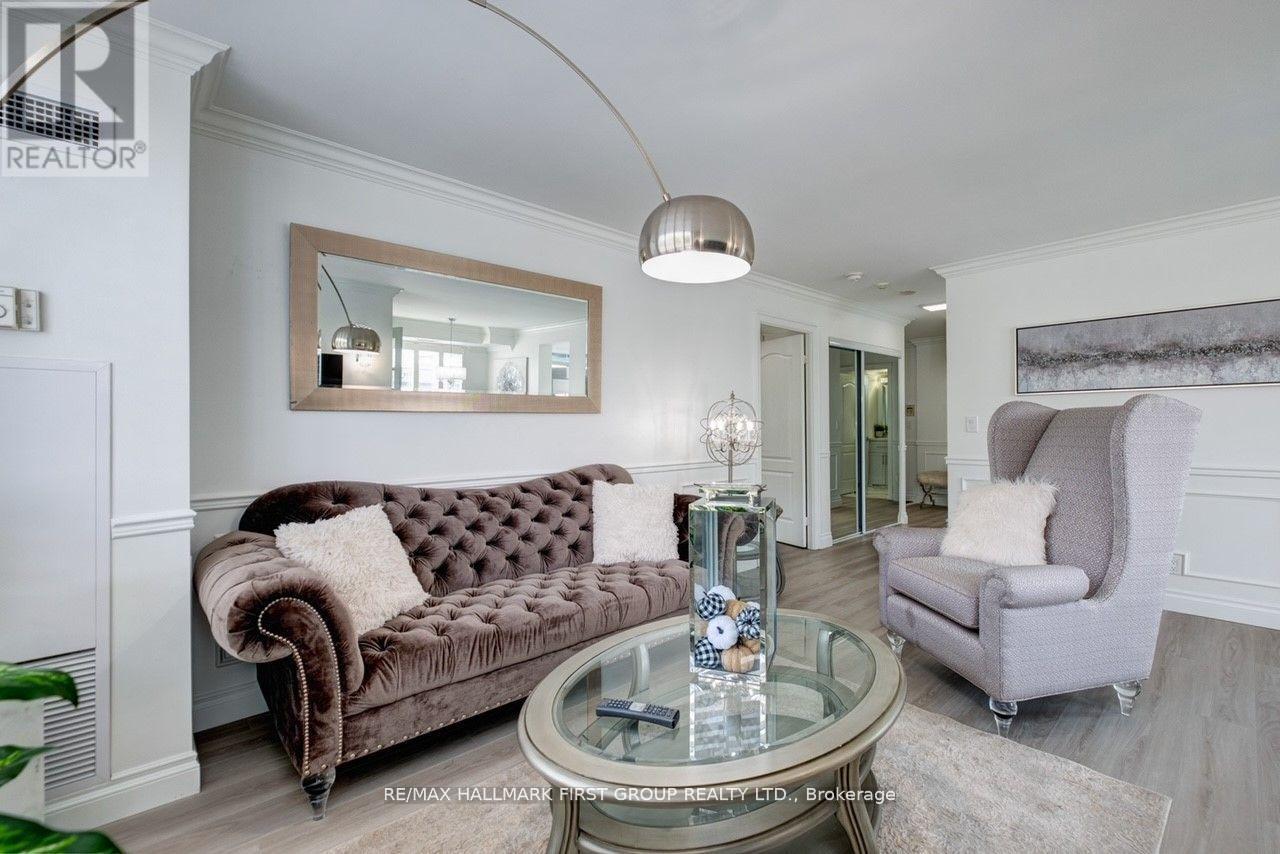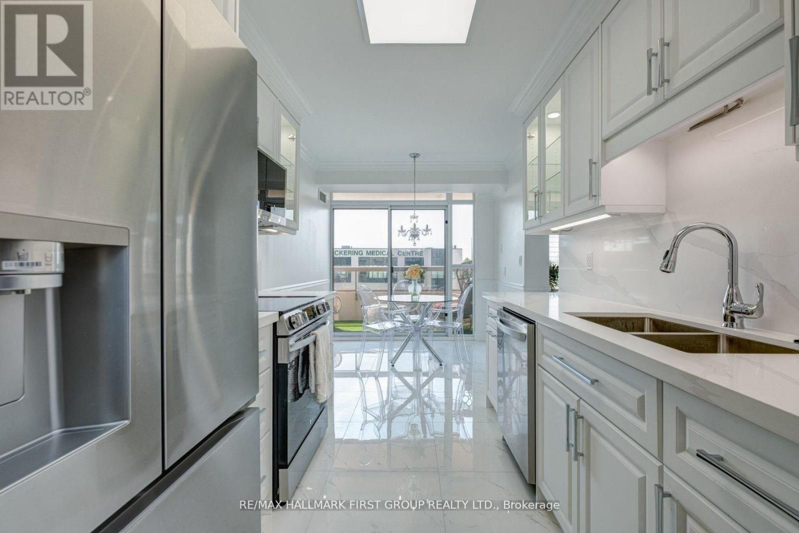 Location, Location, Location! Beautiful Completely Renovated 2 Bedroom Plus Den, 2 Bathrooms, 2nd Floor Condo with Balcony. Located Steps From Pickering Town Center and all Amenities. Includes 1 Parking Spot and 1 Storage Locker. Completely Renovated 1191sq ft. over 100k in Upgrades! New Waterproof Luxury Vinyl Flooring and Porcelain Tiles. Brand New Bright White Kitchen with Quartz Counter and Backsplash, under cabinet lighting, pullout garbage and recycling, moen facets and glass rinser. Brand new stainless steel appliances. Smooth ceilings with crown molding and wainscotting throughout and freshly painted. All matching 4000k lighting with multiple crystal chandeliers with dimmers and multiple USB Outlets. Spa like bathrooms with porcelain tiles, shower niches, potlights, glass shower door, quartz counters on custom vanities. Large primary bedroom can easily fit King size bed set. Spacious 2nd Bedroom and corner den with views, perfect for home office. Large balcony, Must See! (41998700)