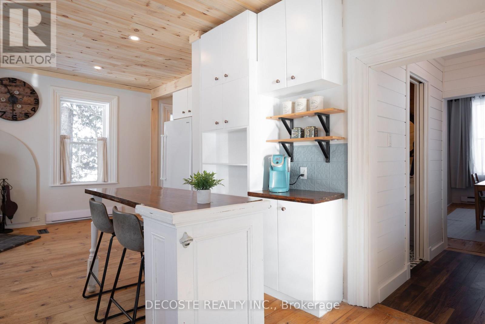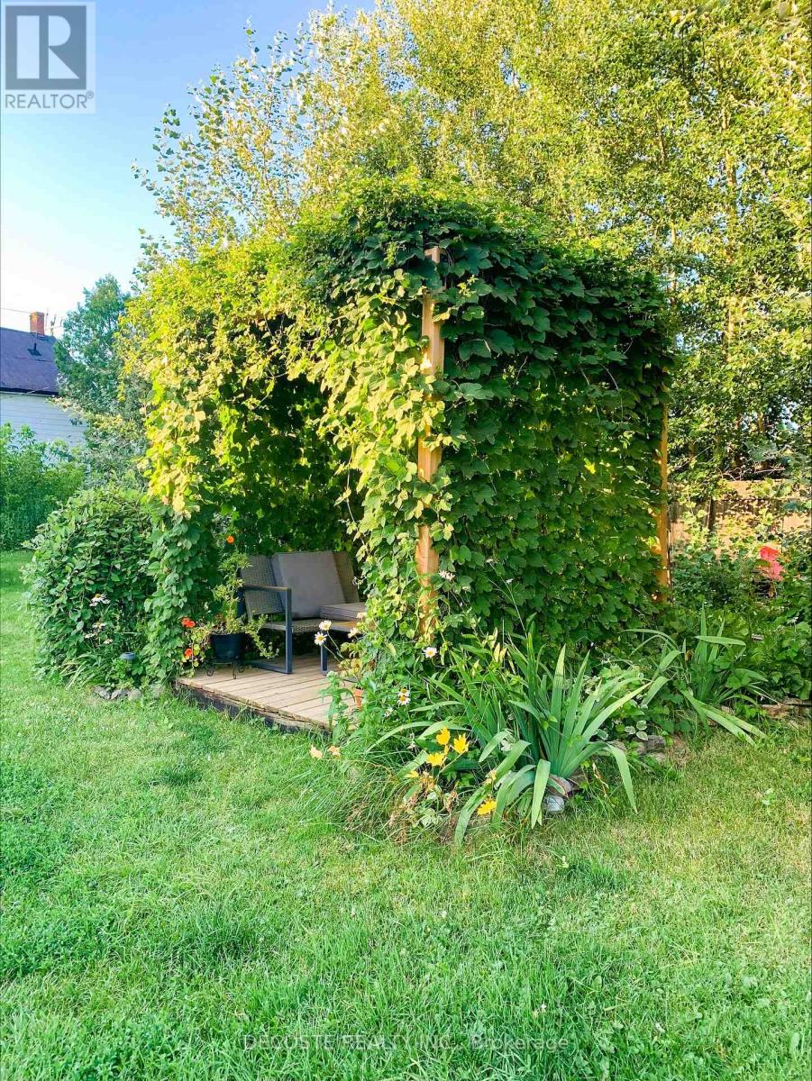 Adorable home with beautiful gardens! Nature lovers and gardeners will appreciate this unique corner-lot property with quick access to Highway 417. The outdoor space is a true retreat, featuring a fenced vegetable garden, established flower beds, a small dome greenhouse with a dug pond, a fenced chicken (or dog) pen complete with chicken coop, a garden shed for tools, an older shed for extra storage, and an old barn offering a finished second-level man cave with kitchen and bar. The 3-bedroom home has been tastefully renovated while preserving its original character, including wide baseboards, door and window casings, and the original wooden staircase. The kitchen features knotty pine wall paneling, adding warmth and charm. A convenient main-floor laundry area adds everyday practicality. The wood stove provides efficient supplemental heat and creates a cozy ambiance during the colder months. This lovely home and property are ready for new owners-come for a visit, you'll love it. (41998931)