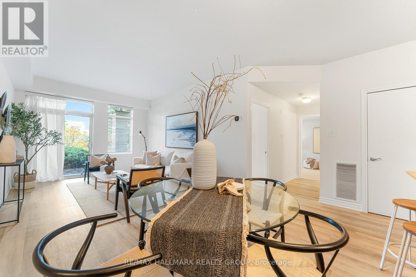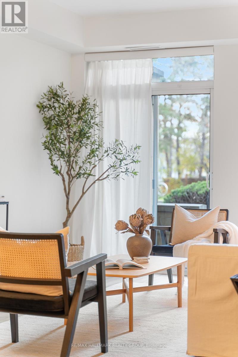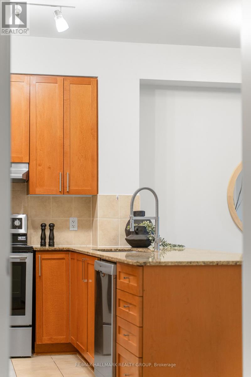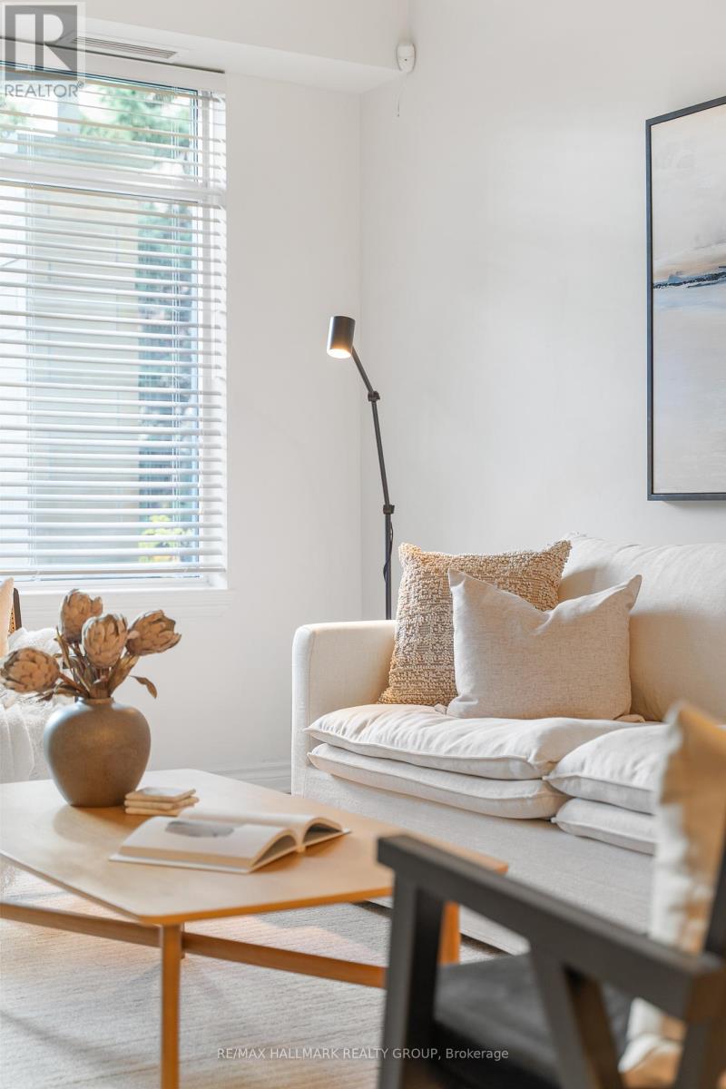 Discover life at Sussex Square, one of Ottawa's most sought after communities! This beautifully appointed south-facing two bedroom PLUS Den condo delivers an ideal balance of style, comfort, and urban convenience. The bright, open-concept design is enhanced by tall ceilings, peaceful garden views, and a walkout to your own private patio - a perfect extension of the living space. The kitchen is thoughtfully designed for everyday living and entertaining alike, featuring stainless steel appliances, rich cabinetry, generous counter space, and a convenient breakfast bar. A spacious Den adds valuable flexibility, easily accommodating a home office, guest area, reading retreat, or creative space. The Primary Bedroom offers a walk-through closet and a modern ensuite, while the second bedroom and full bathroom provide excellent versatility for guests or family. Added conveniences include in-suite laundry, private storage locker, and TWO underground parking spaces - a standout feature rarely found downtown! Situated in the heart of Lower Town, you're moments from the ByWard Market, Global Affairs, embassies, LRT stations, Parliament Hill, and scenic river pathways. Enjoy all the benefits of downtown living while coming home to an established, quiet neighbourhood. Residents of Sussex Square enjoy exceptional private amenities, including a rooftop terrace with BBQs and sweeping city views - perfect for watching Canada Day fireworks. Not to mention, a fully equipped fitness centre and party room! Plus, Cathcart Park is just across the street, offering easy access to green space. Refined, walkable, and exceptionally well-located - this is downtown condo living at its best. Come fall in love today! (41999330)